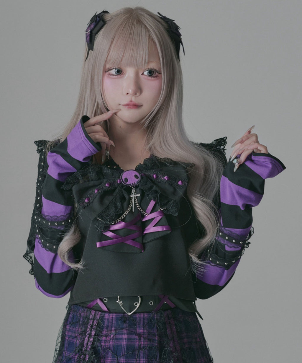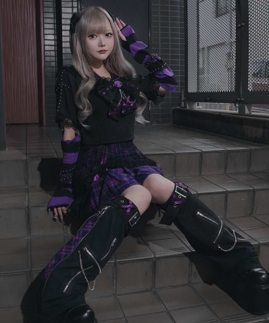 アームカバーを外したり、リボンをヘッドドレスとして使ったり、その日の気分でダークかわいいスタイルを楽しんでください。