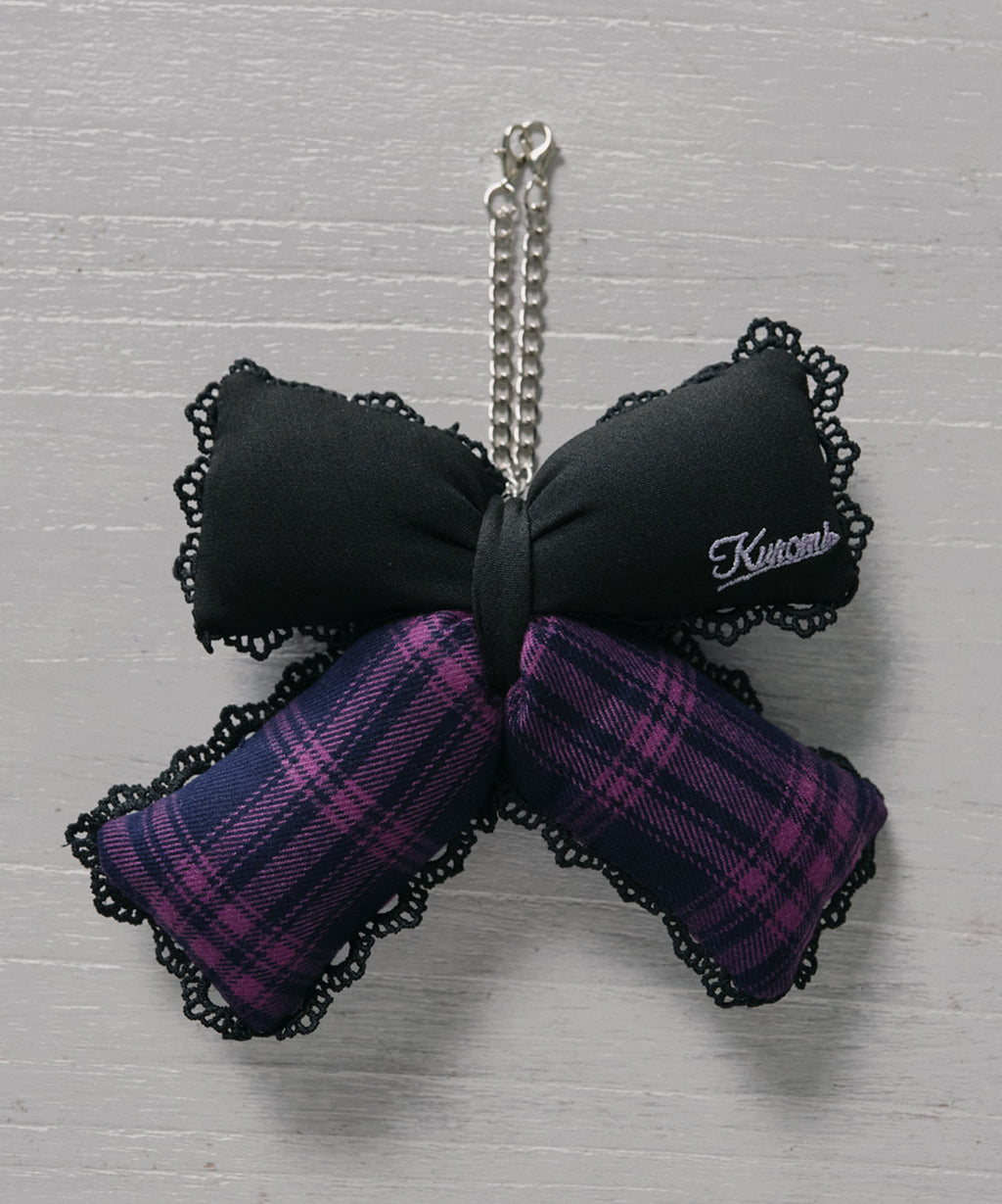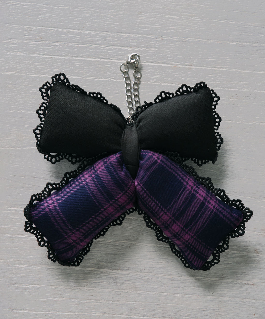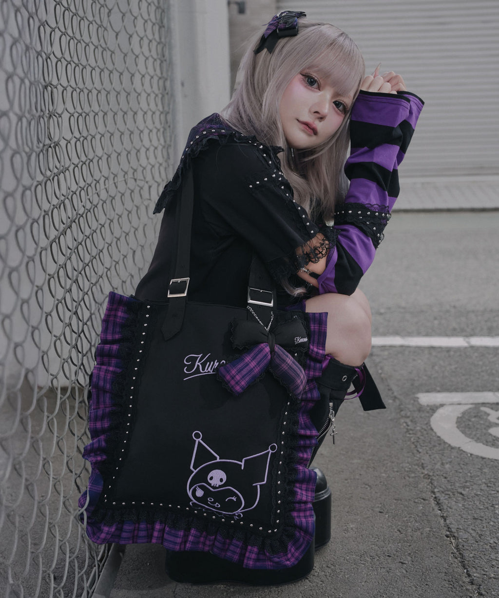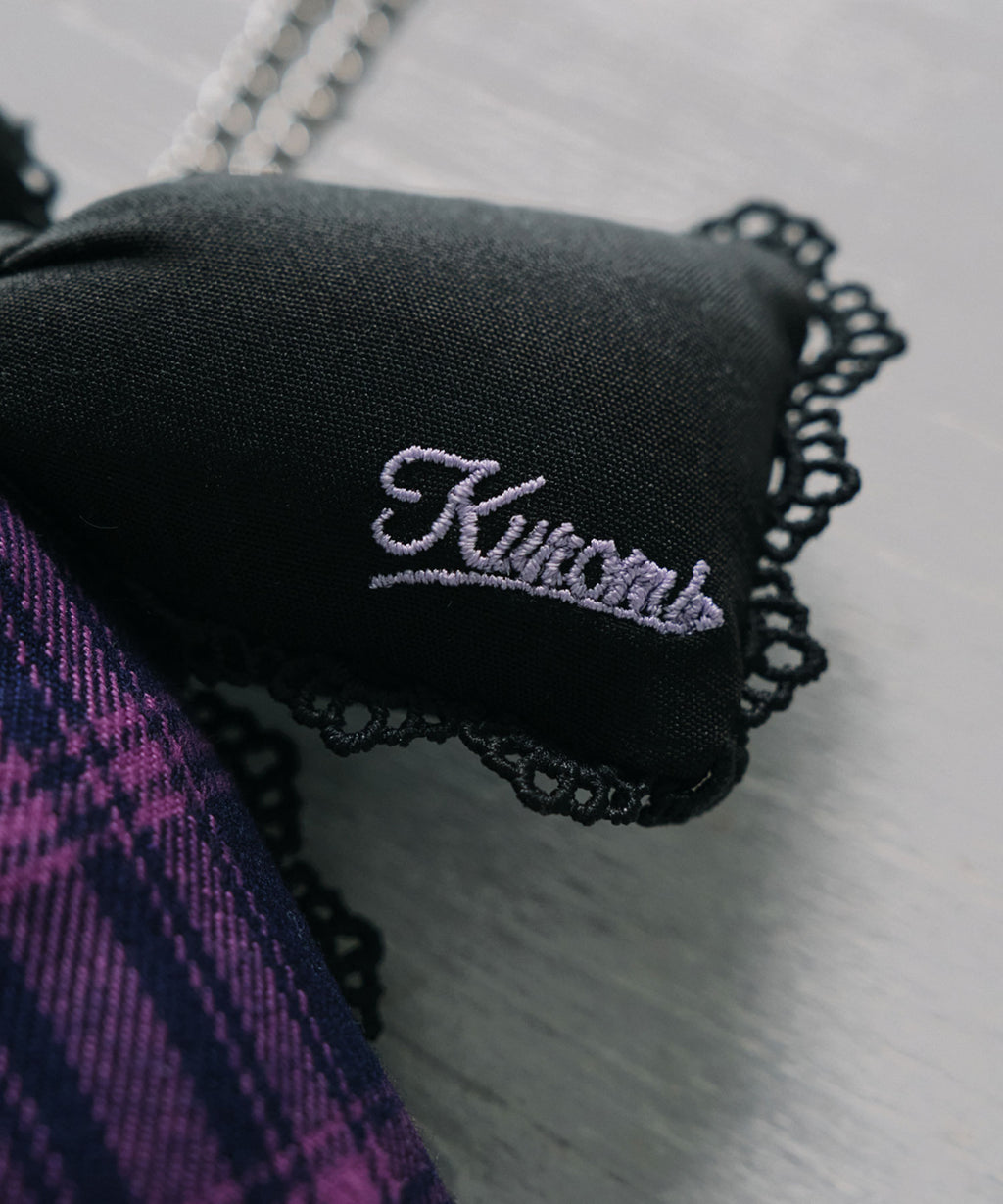 パープルのチェック柄とブラックの生地を組み合わせ、甘さの中に少しクールな雰囲気をプラスしました。