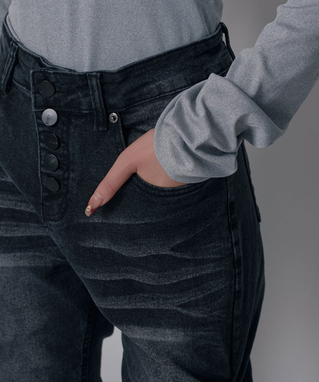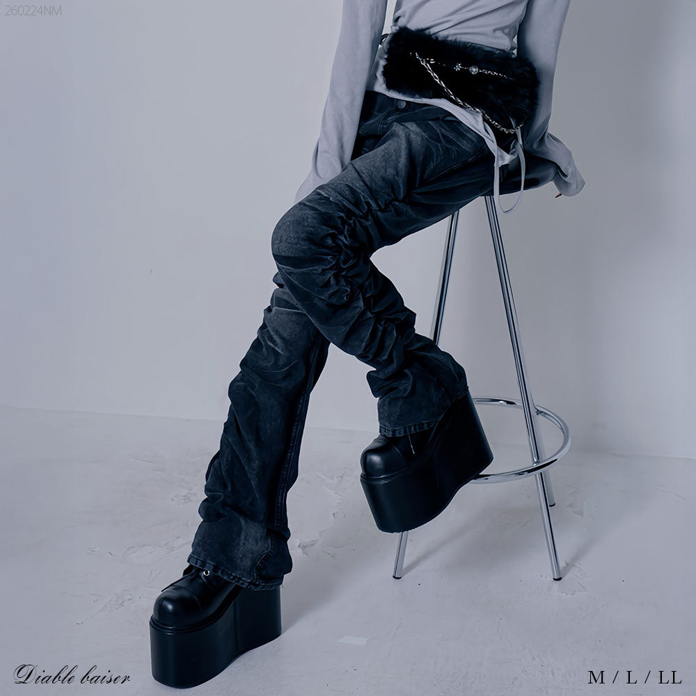 Y2Kファッション ギャル グランジ ストリート シャーリングデニム 加工デニム 美脚デニム 脚長効果 厚底コーデ 韓国ファッション
