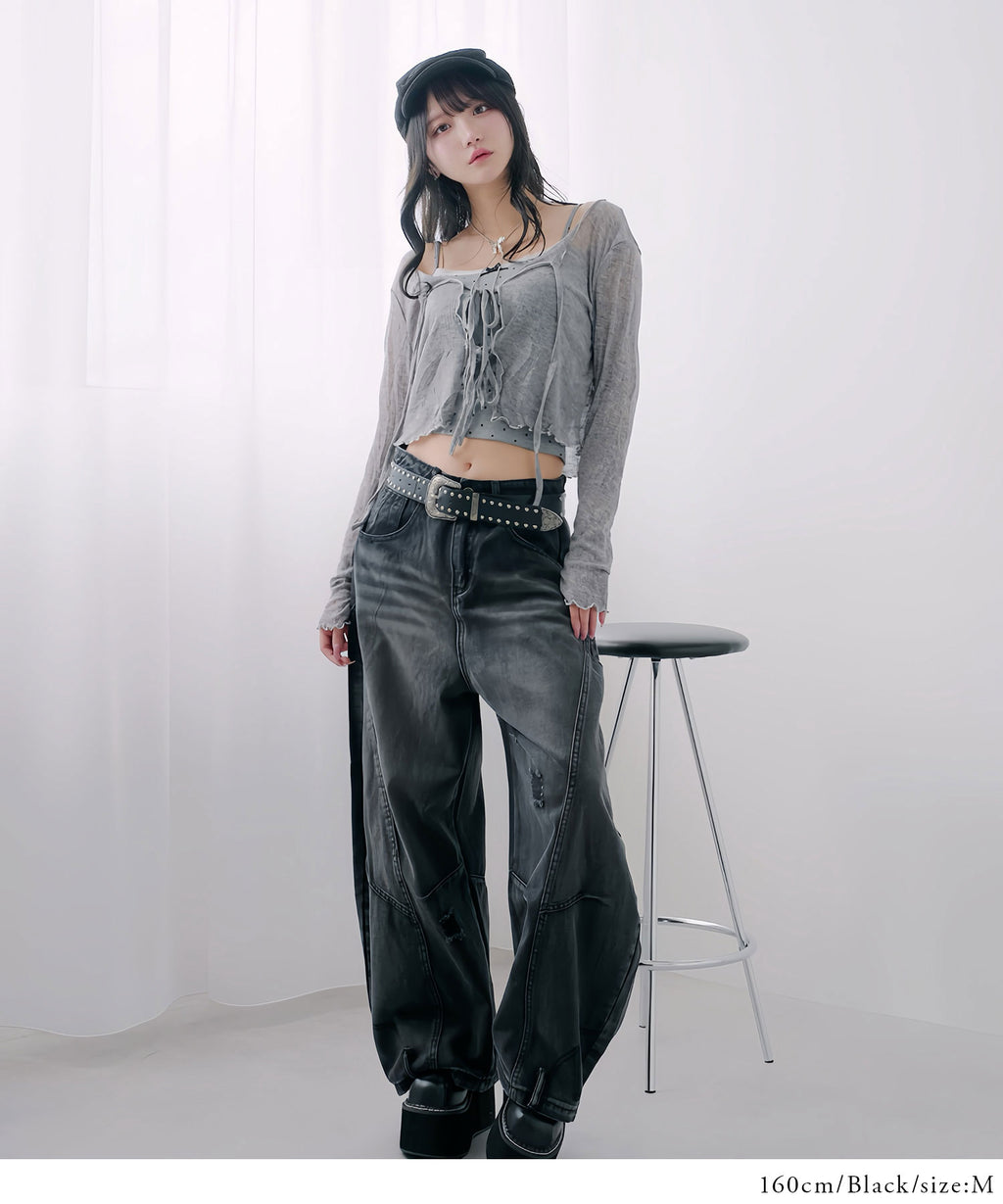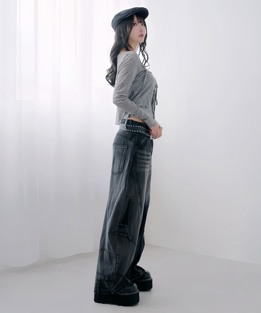 ダメージ加工やアクセントディテールが、Y2K・グランジムードをプラス。