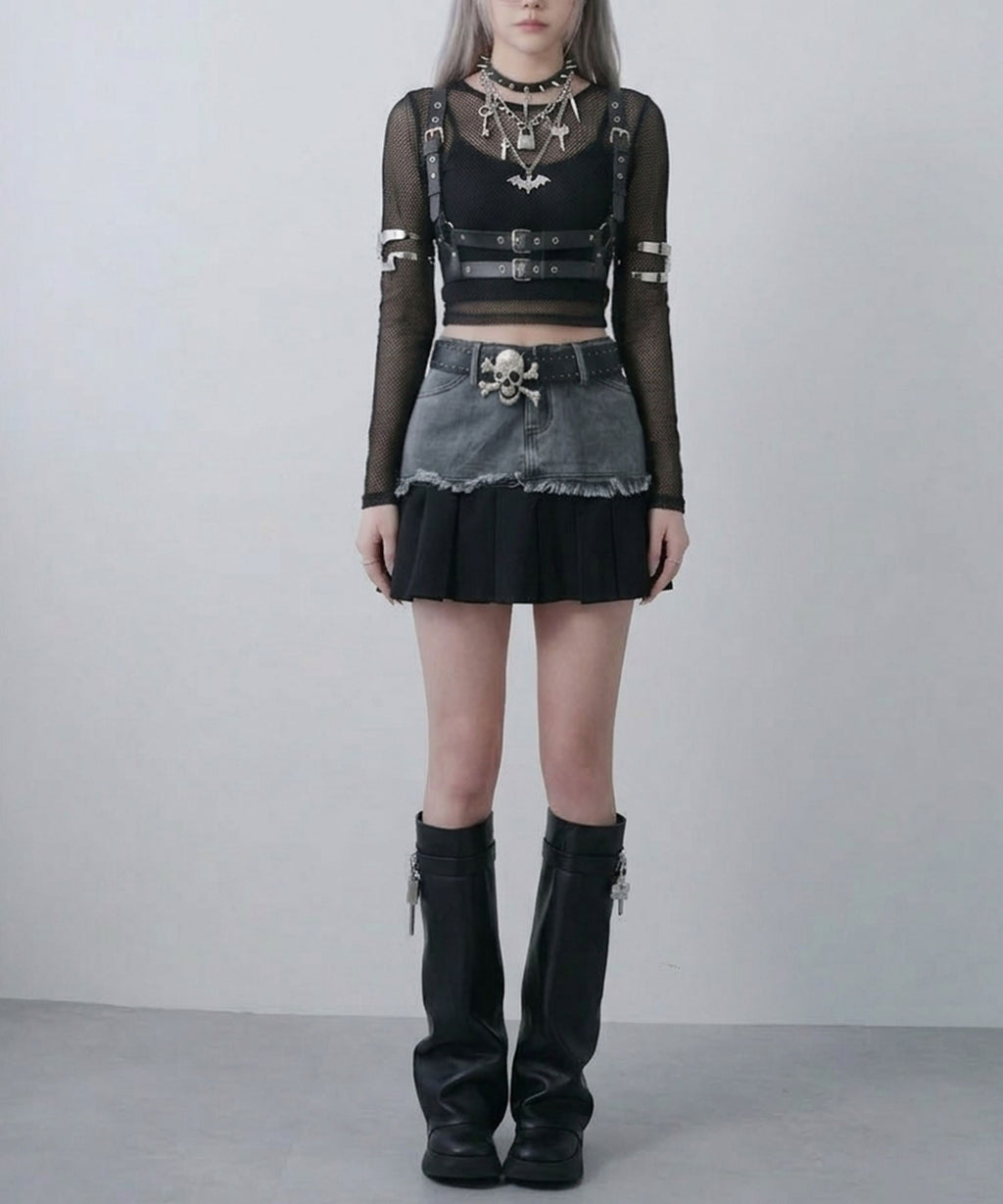 ショートトップスと合わせたY2Kスタイルや、メッシュトップスなどを合わせたグランジコーデにもおすすめ。