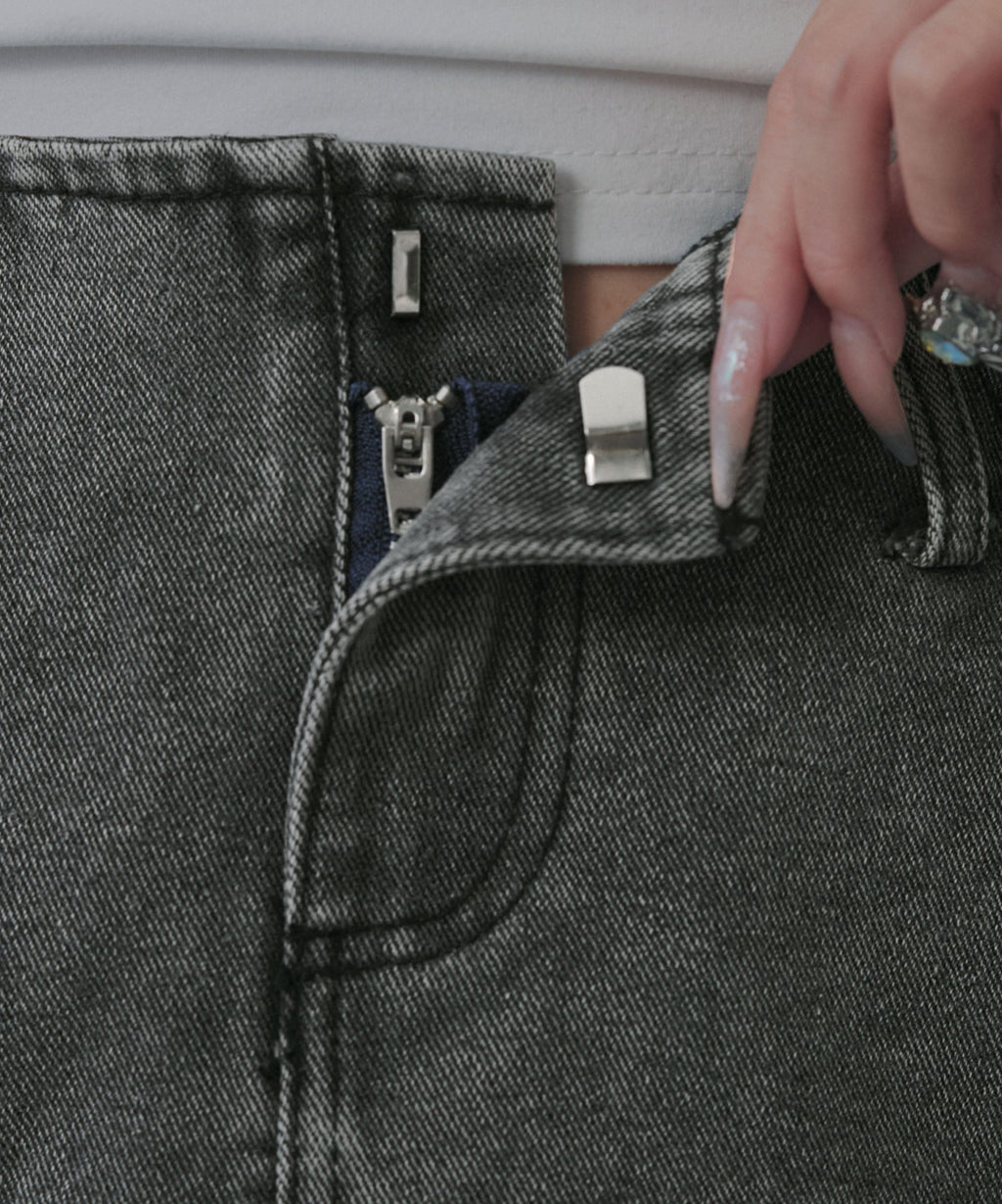 切りっぱなしのフリンジ加工がグランジやY2Kムードを高めるアクセントに。
