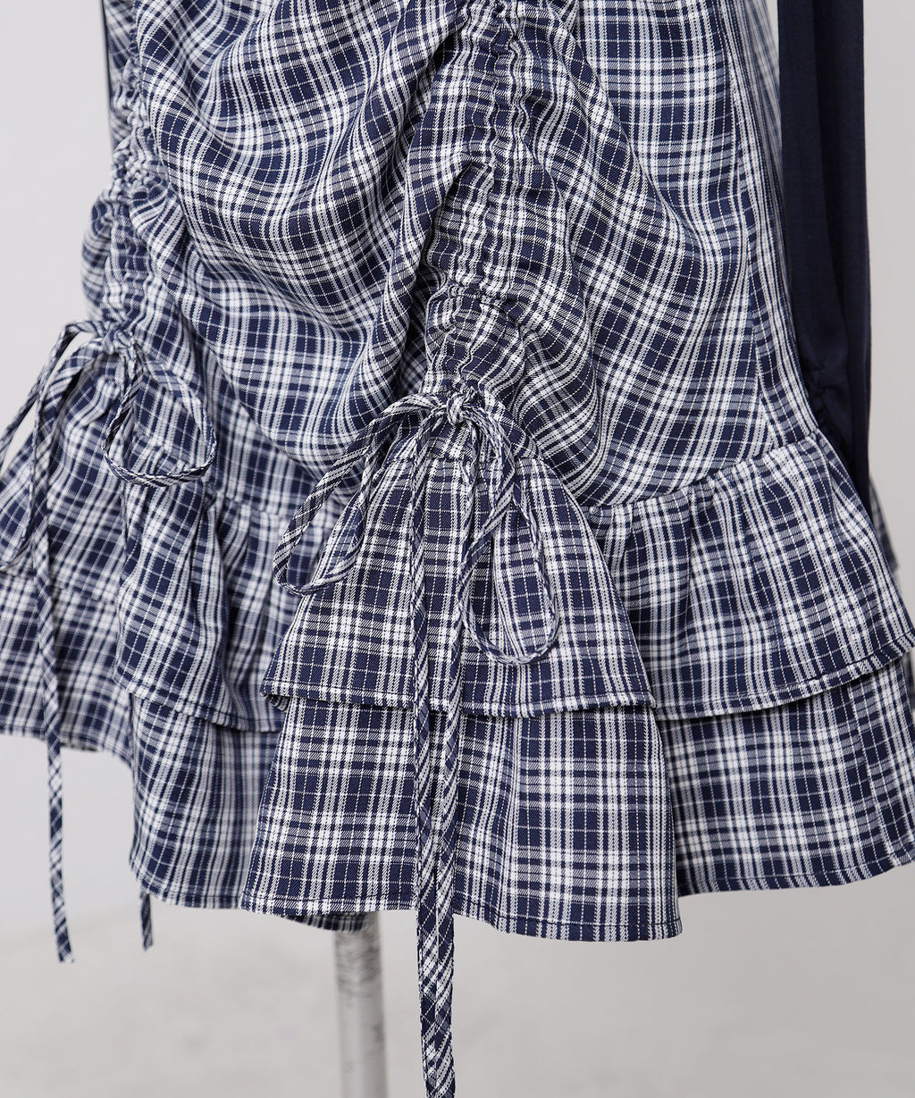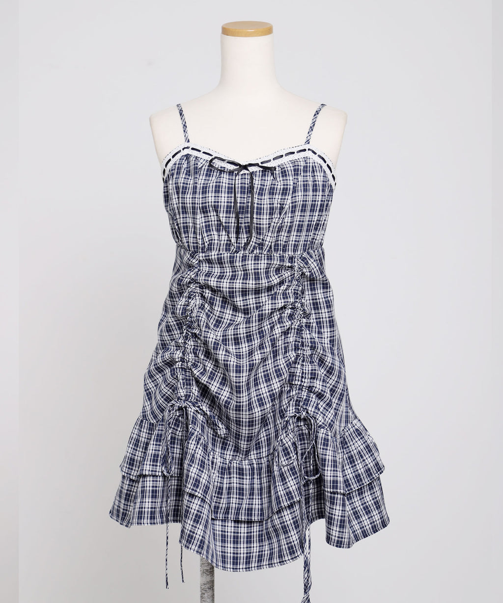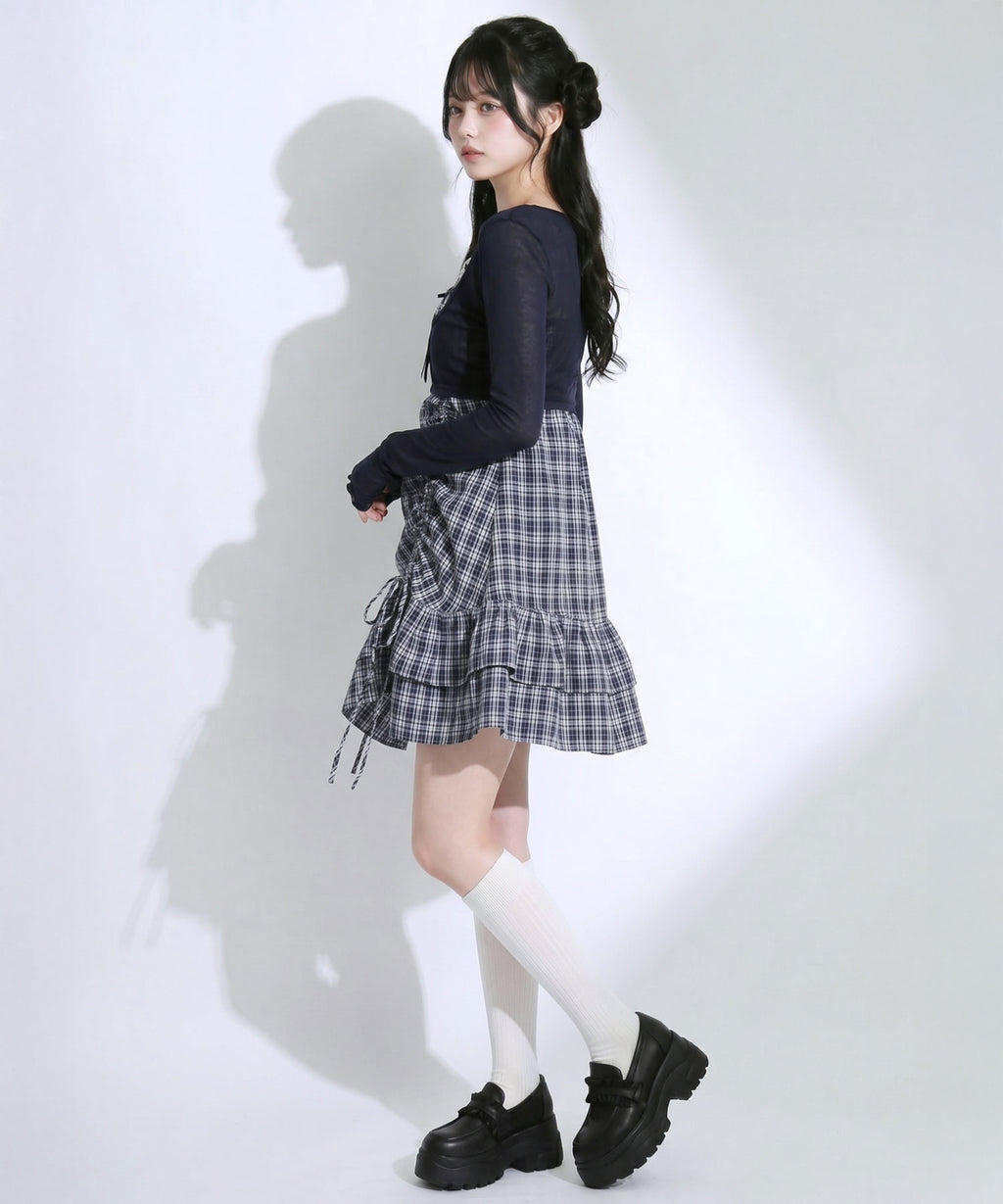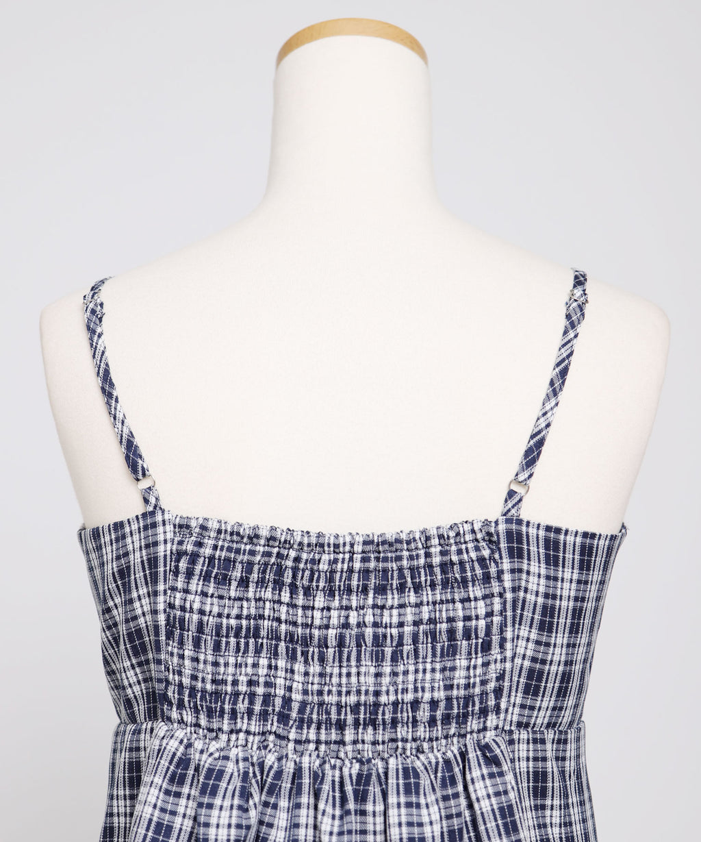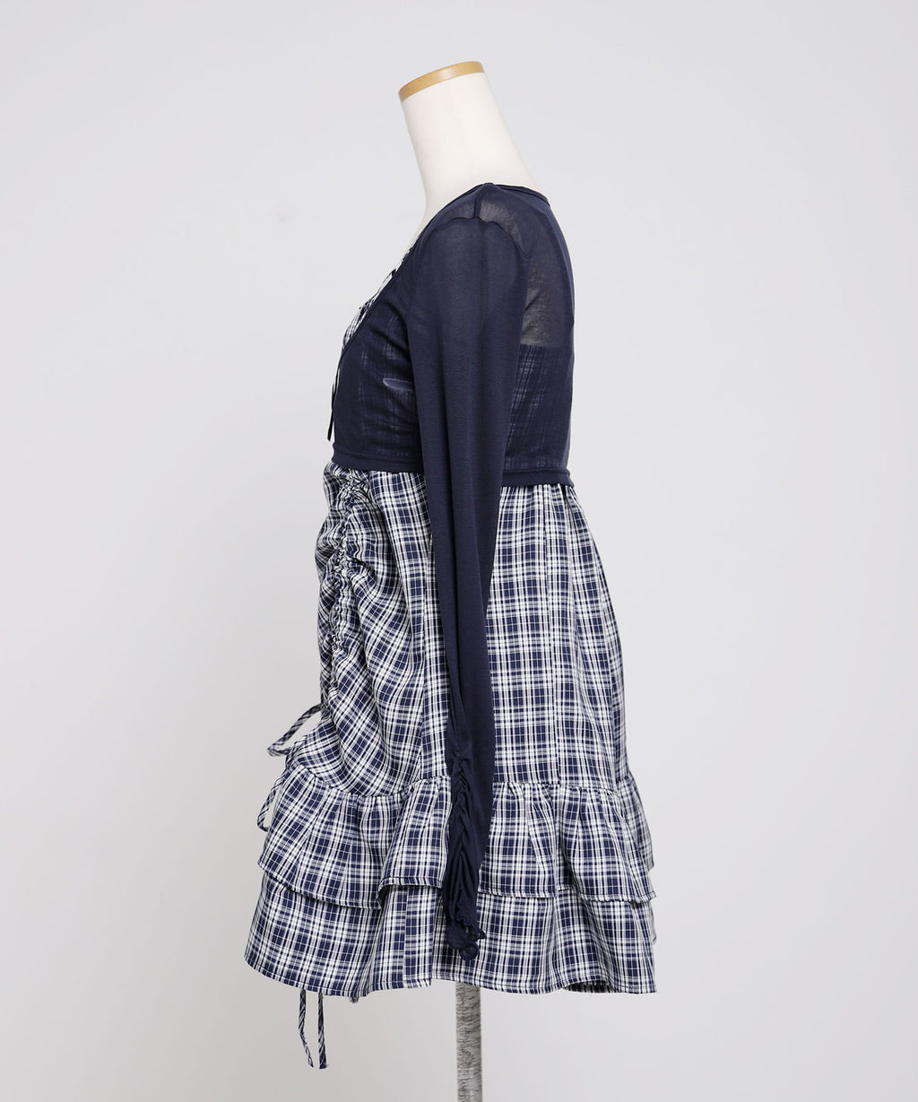 トレンド感溢れるシアーボレロと、ガーリーなチェック柄キャミワンピースがセットになったアンサンブルアイテム。