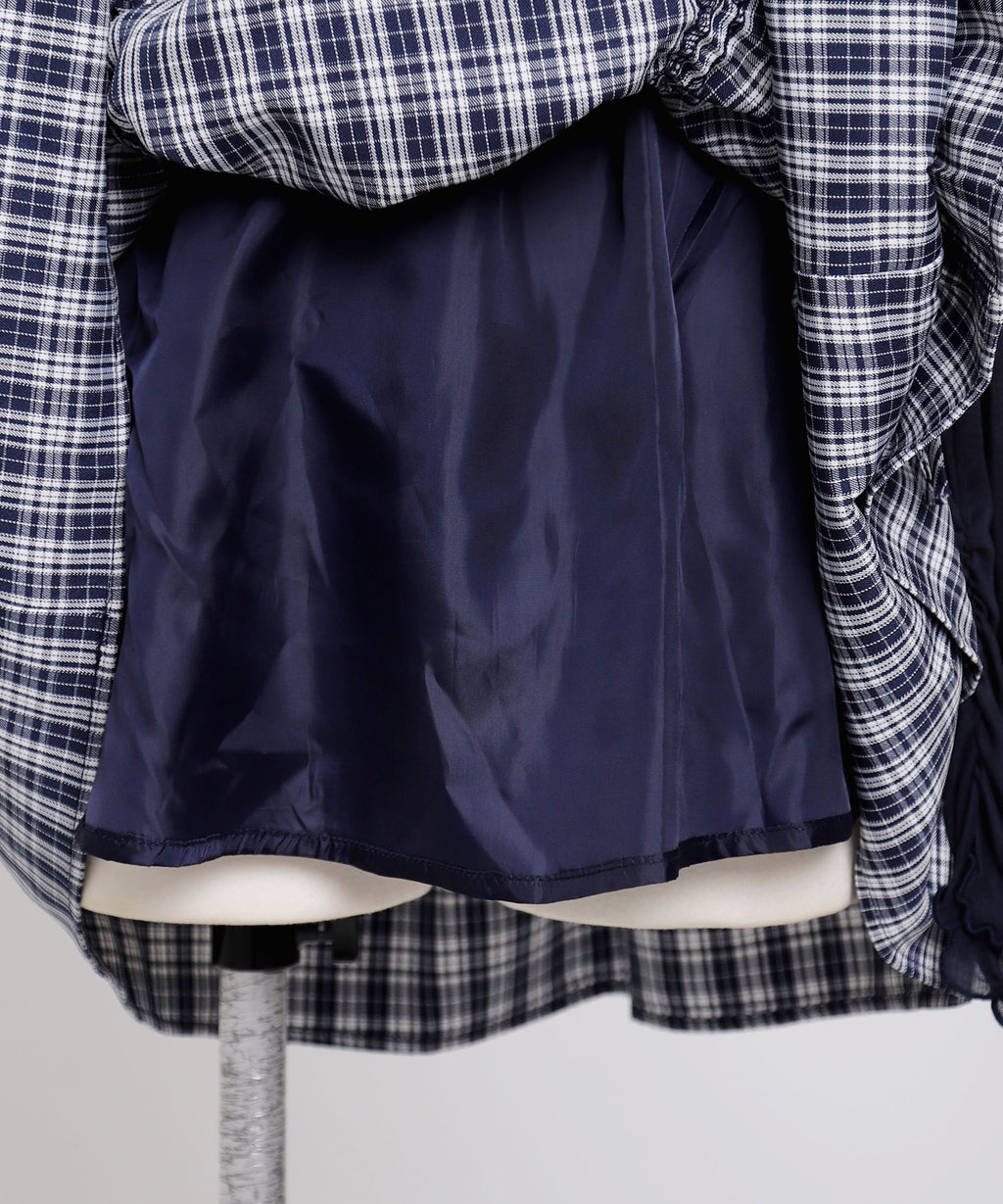ワンピースは、さらりとした質感でシワになりにくいチェック生地を使用。ボレロは伸縮性のあるシアー素材で、軽やかな着心地が魅力です。