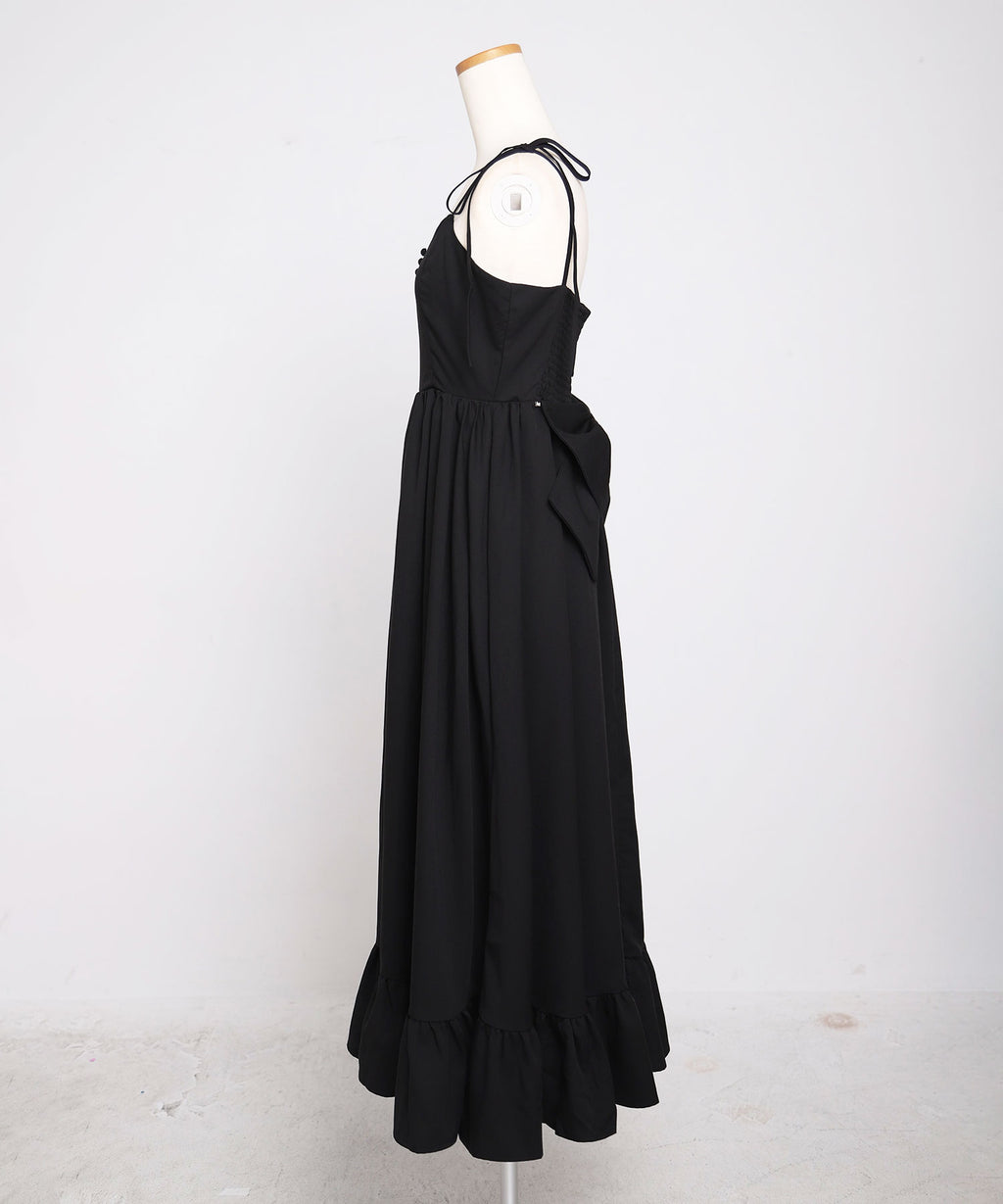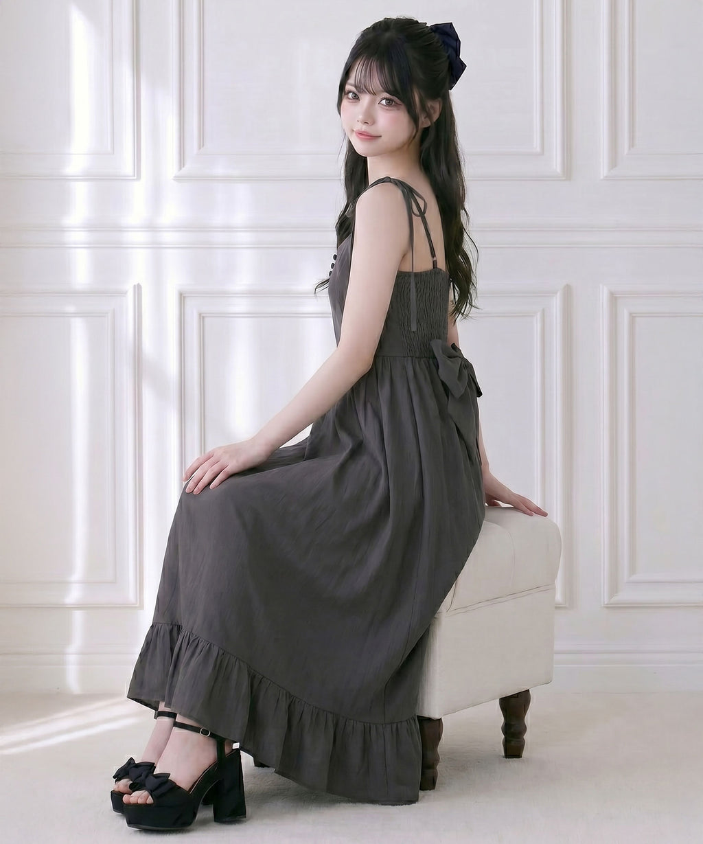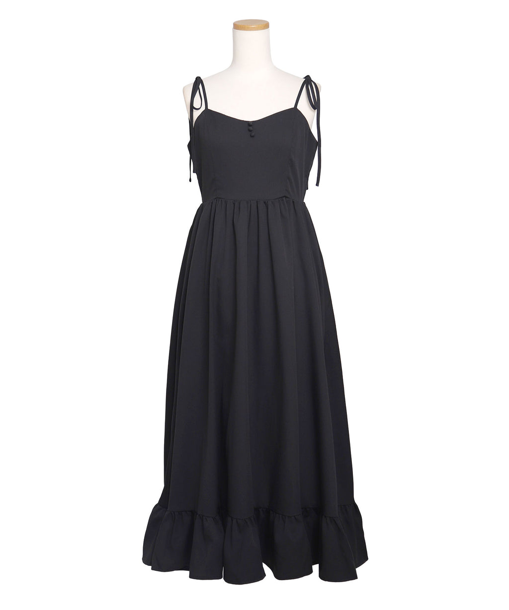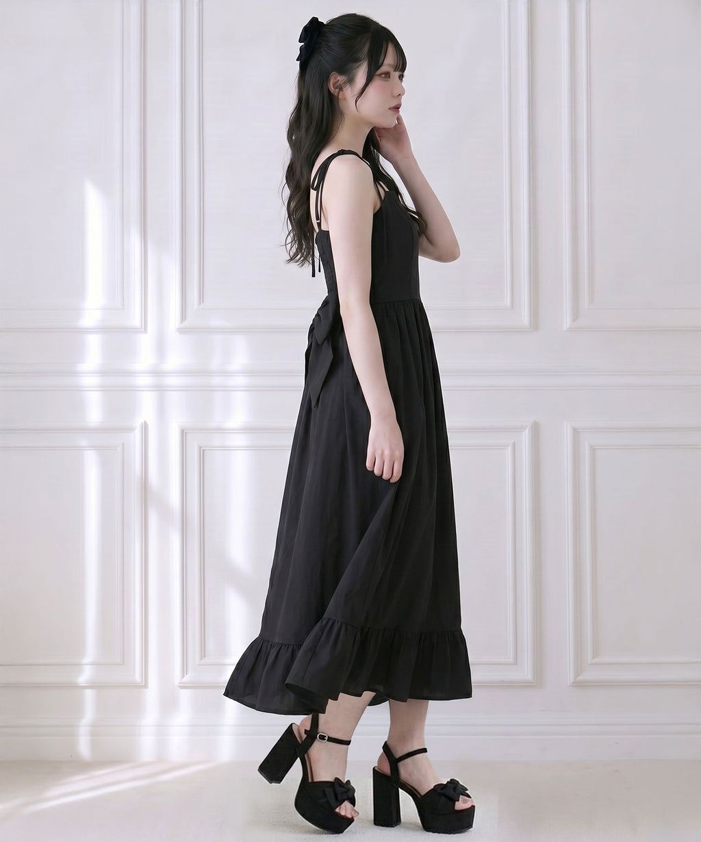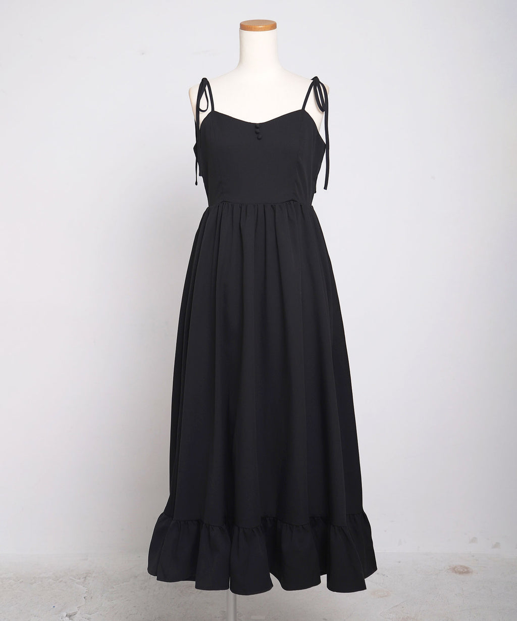 肩紐は自由に長さ調整が可能で、自分の体型にぴったりフィット。背中はシャーリングゴム仕様なので、、着脱がスムーズで着心地もストレスフリー♪裾のフリルが動くたびに揺れ、女性らしい華やかなシルエットを演出します。