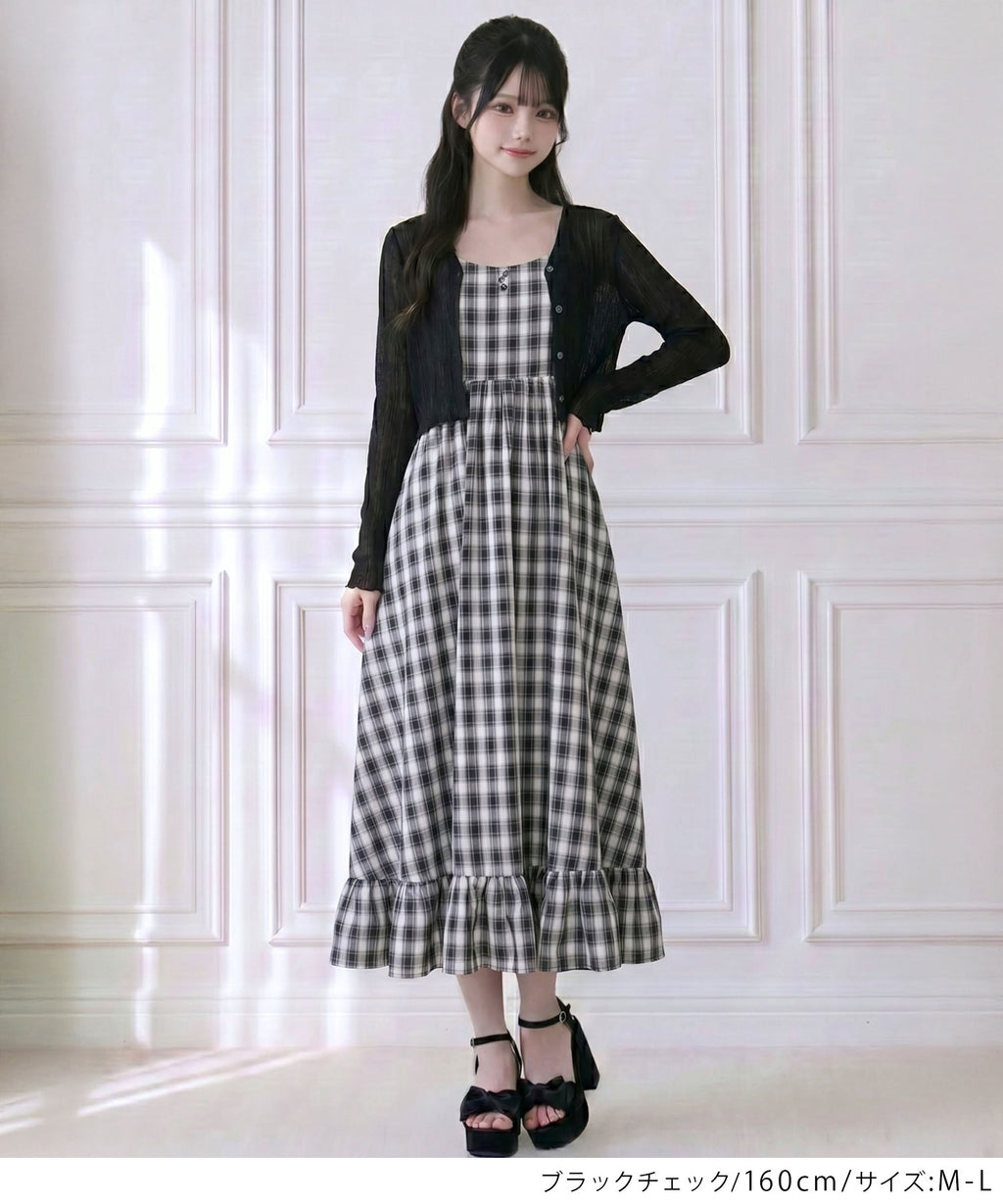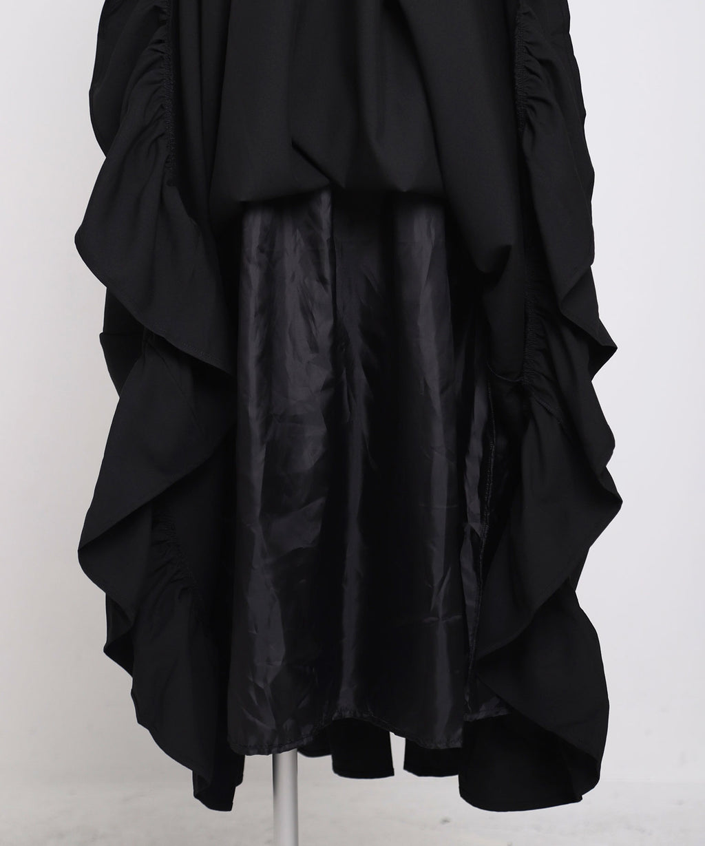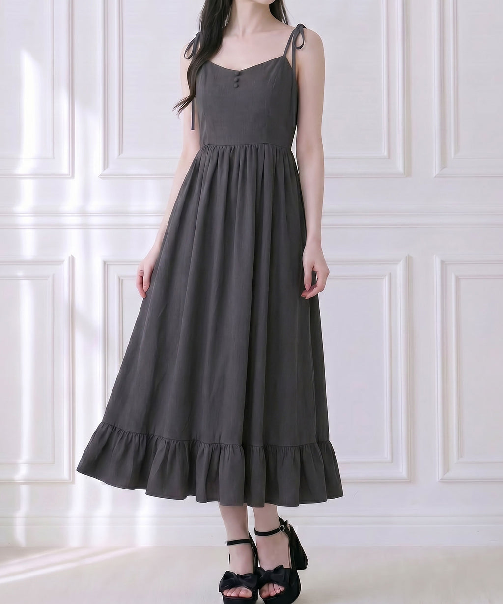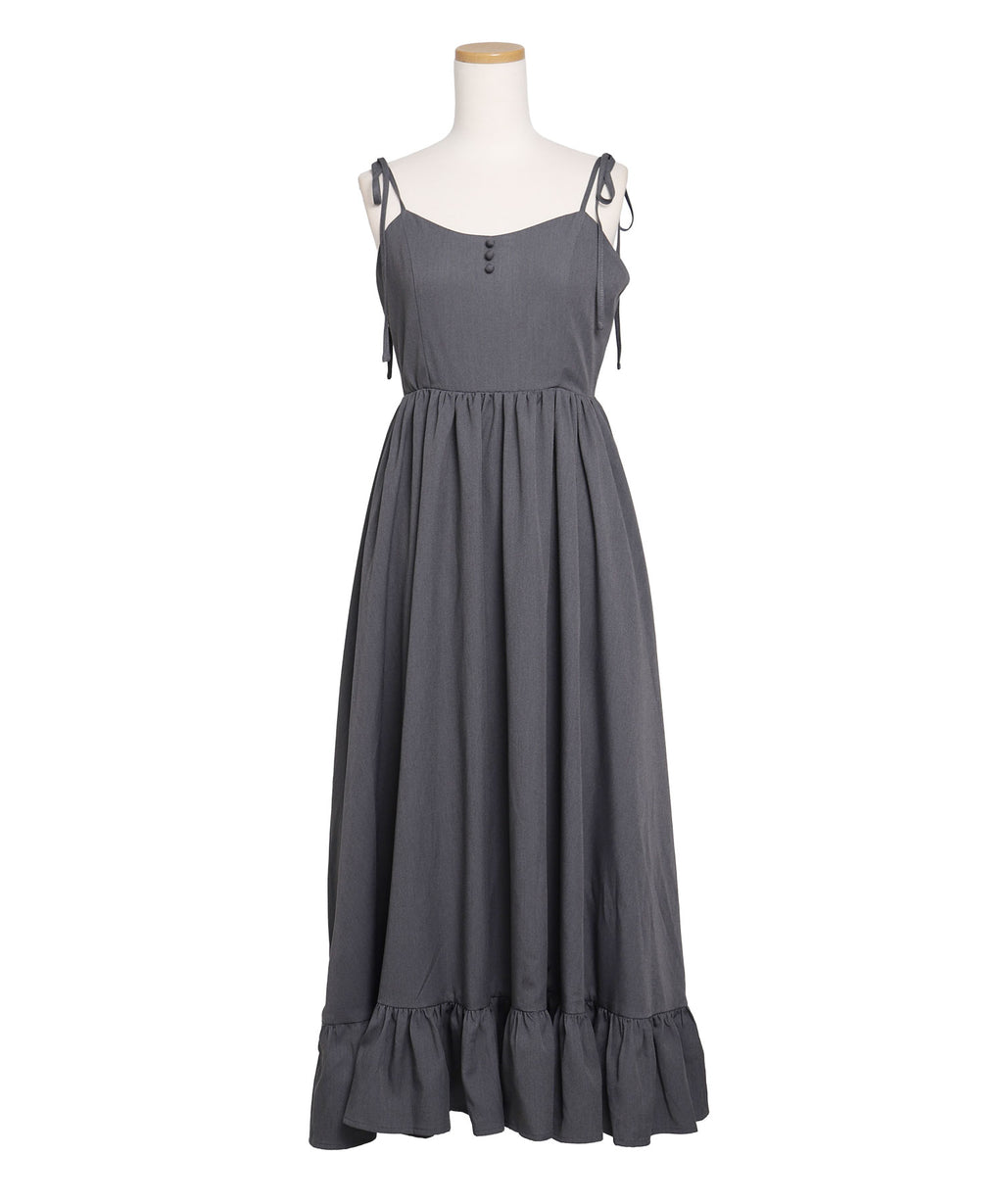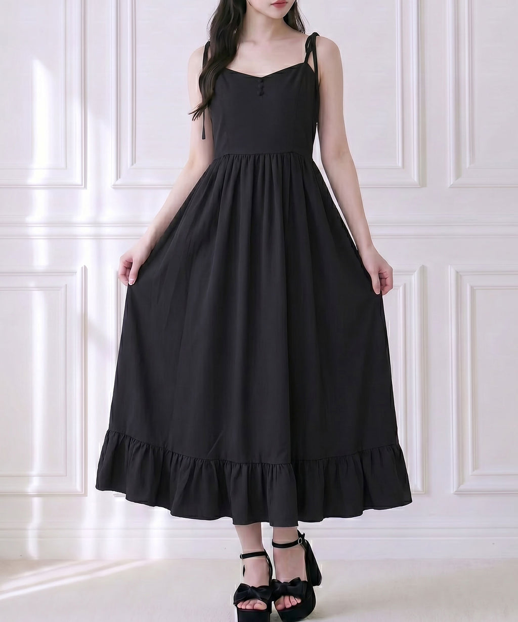 肩紐は自由に長さ調整が可能で、自分の体型にぴったりフィット。背中はシャーリングゴム仕様なので、、着脱がスムーズで着心地もストレスフリー♪裾のフリルが動くたびに揺れ、女性らしい華やかなシルエットを演出します。