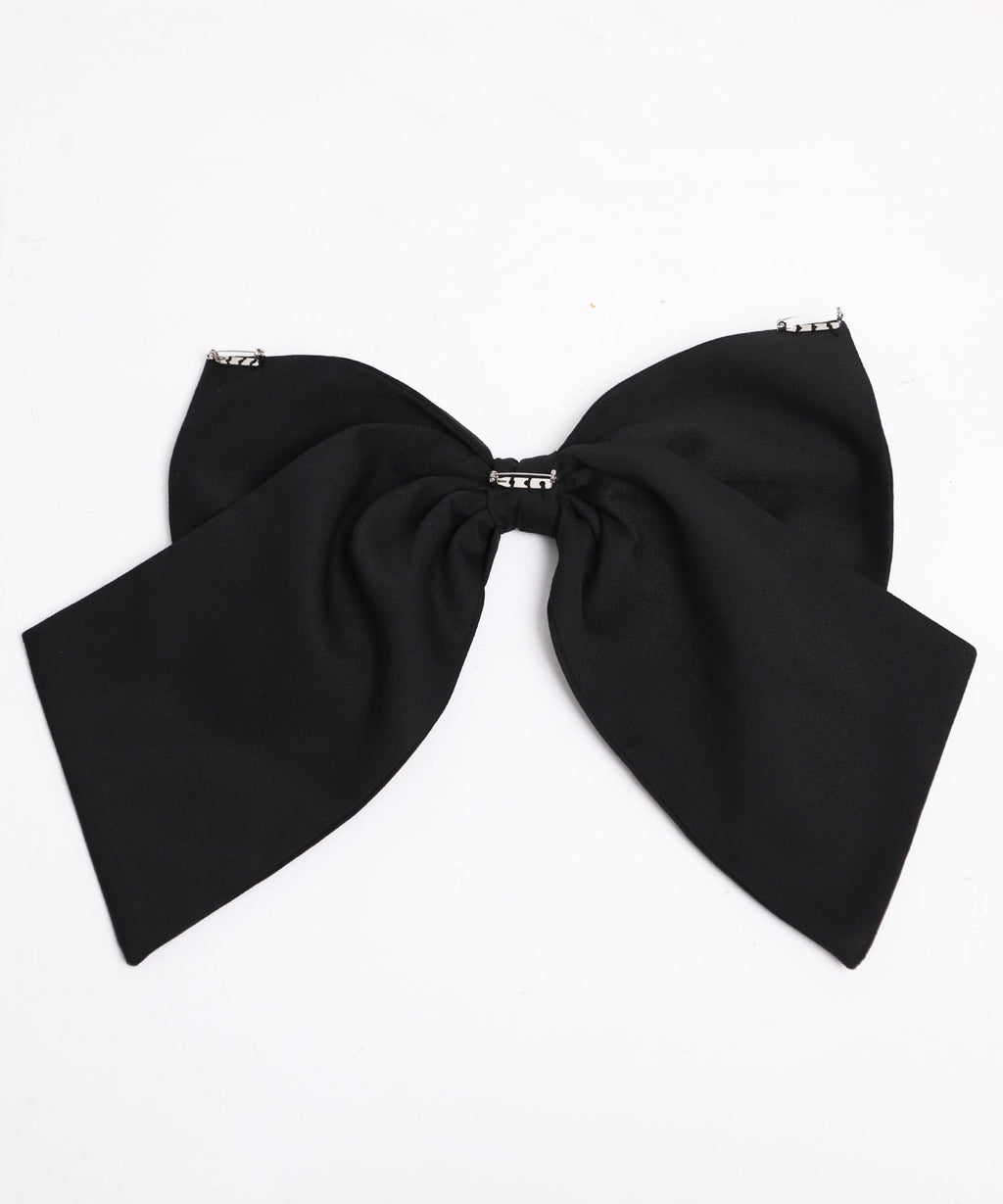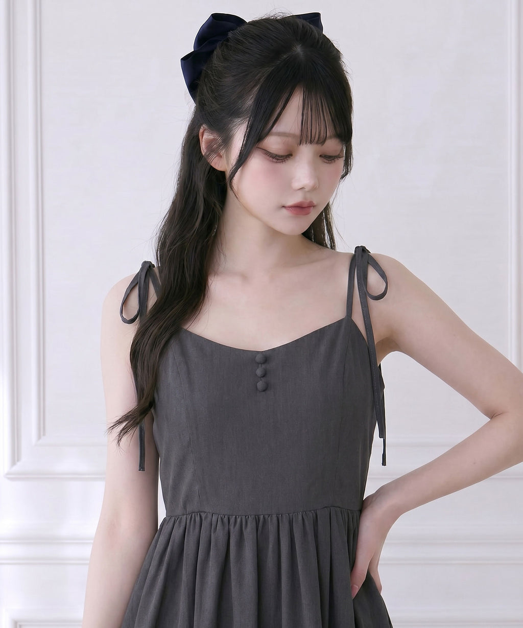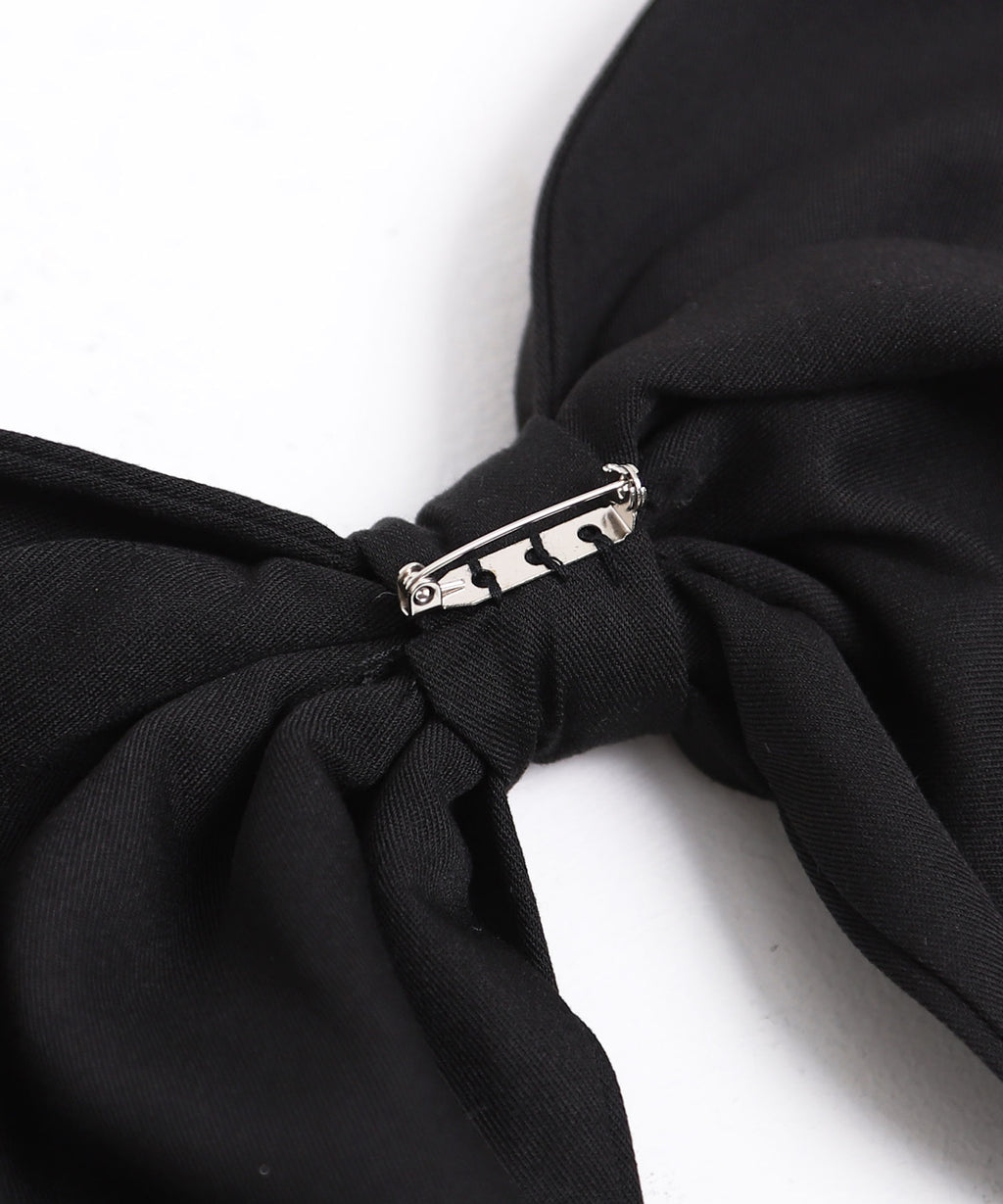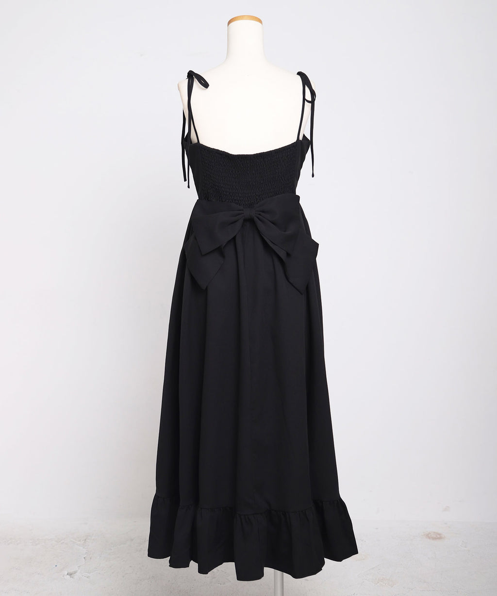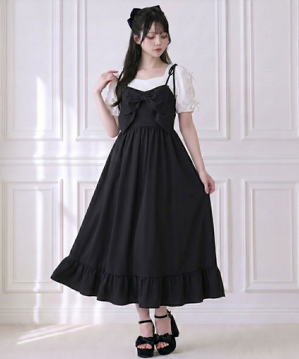 目を惹く大きなリボンは取り外し可能で、前身頃・後ろ・リボンなし等お好みの着こなしをマルチに楽しめる万能ワンピース。