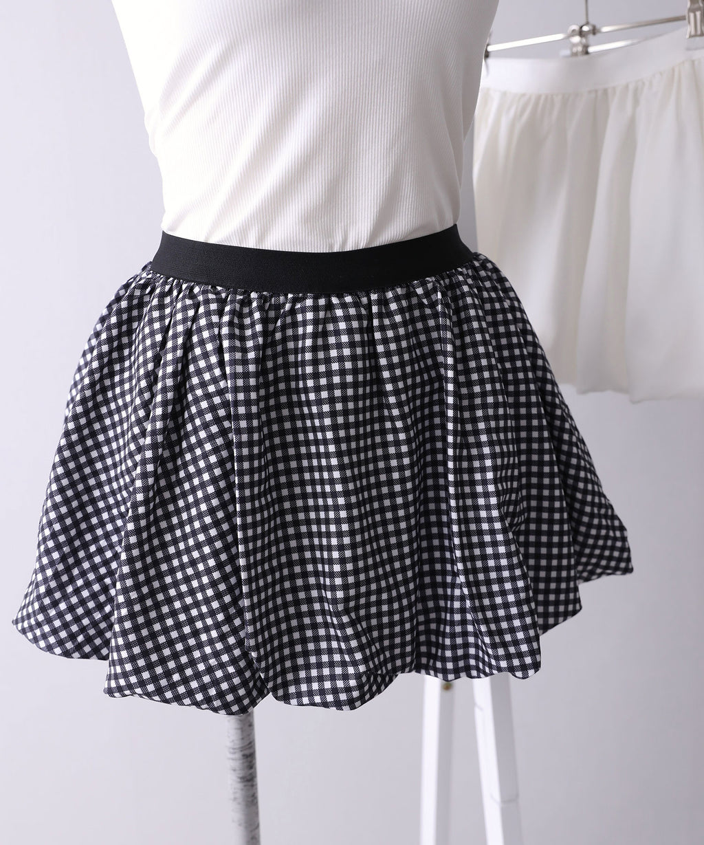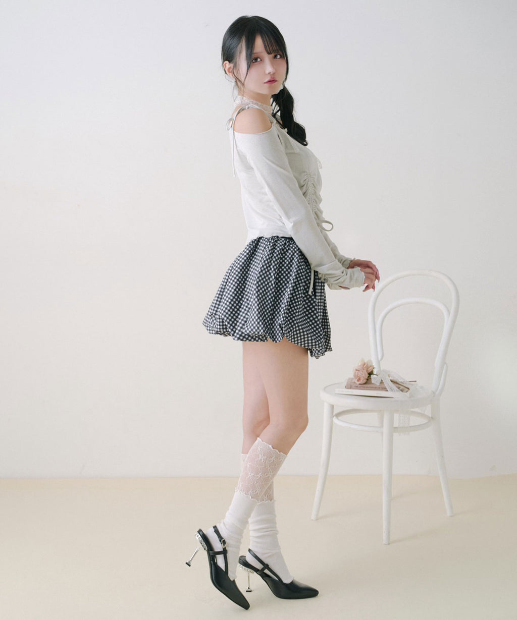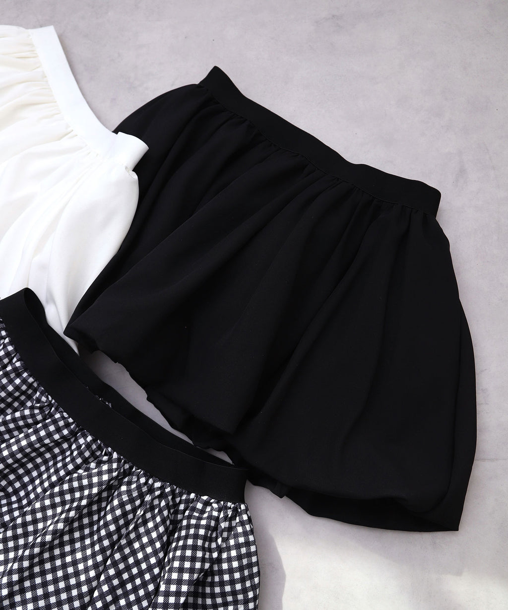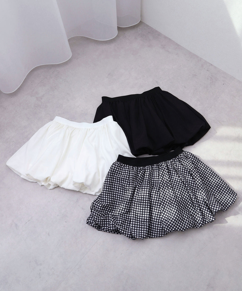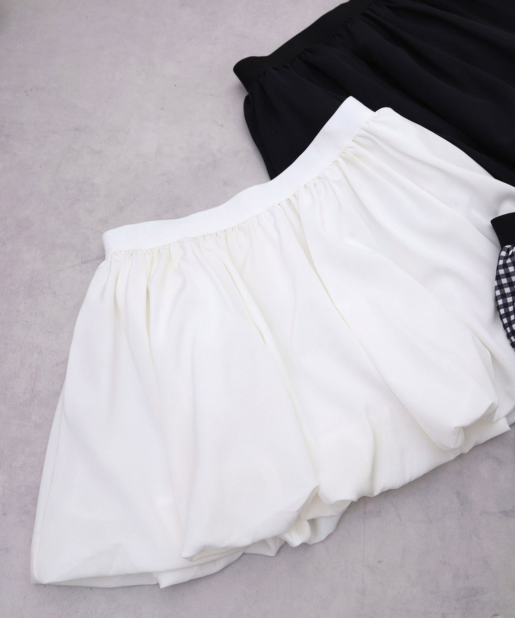バレエコアスタイルを存分に楽しめる、愛らしいバルーンミニスカート。