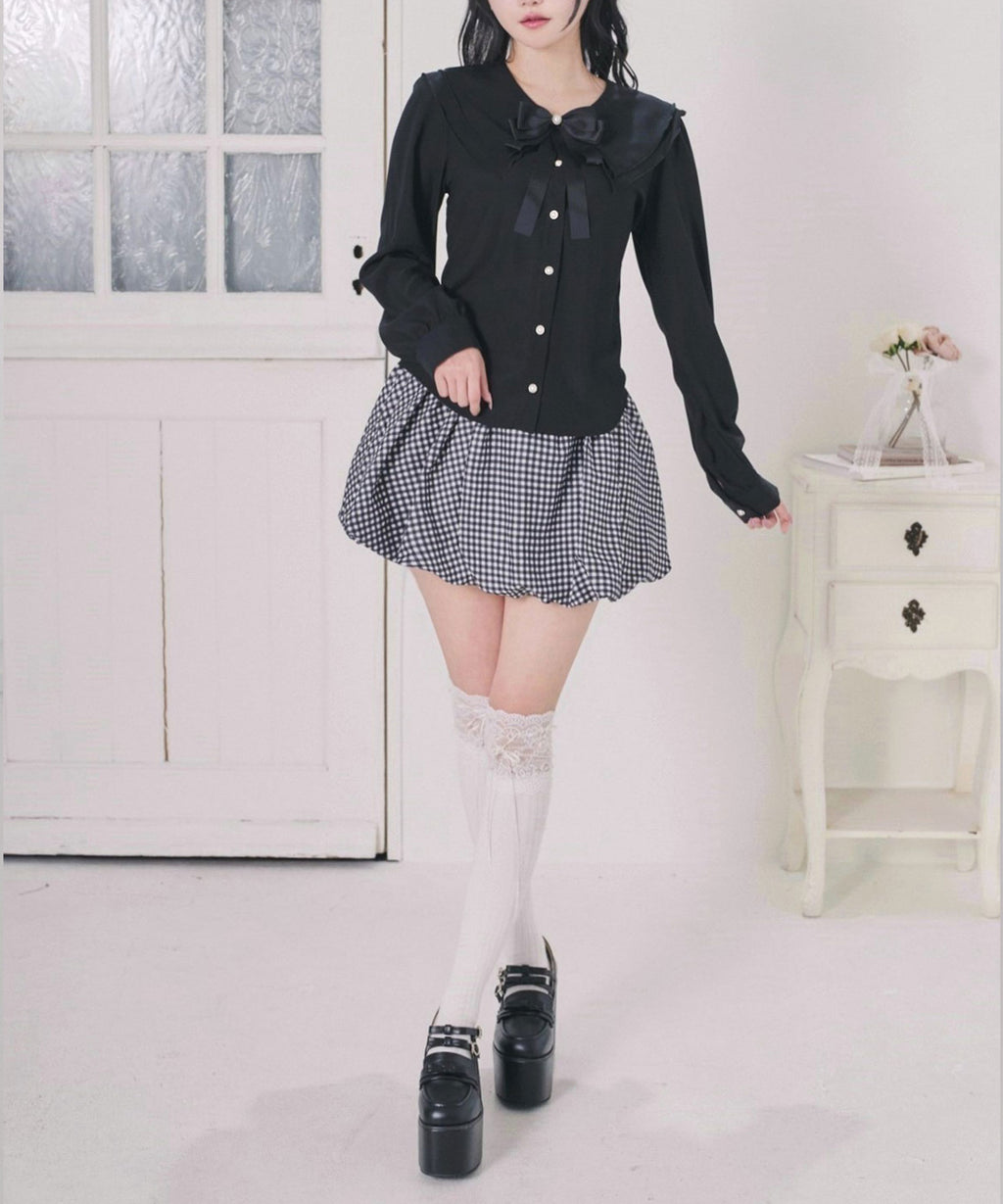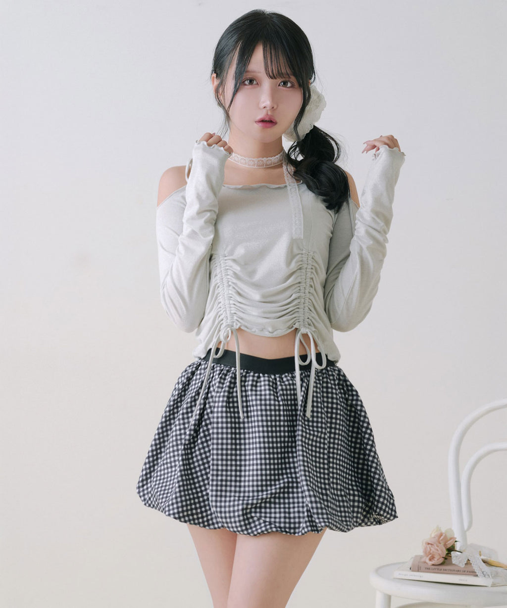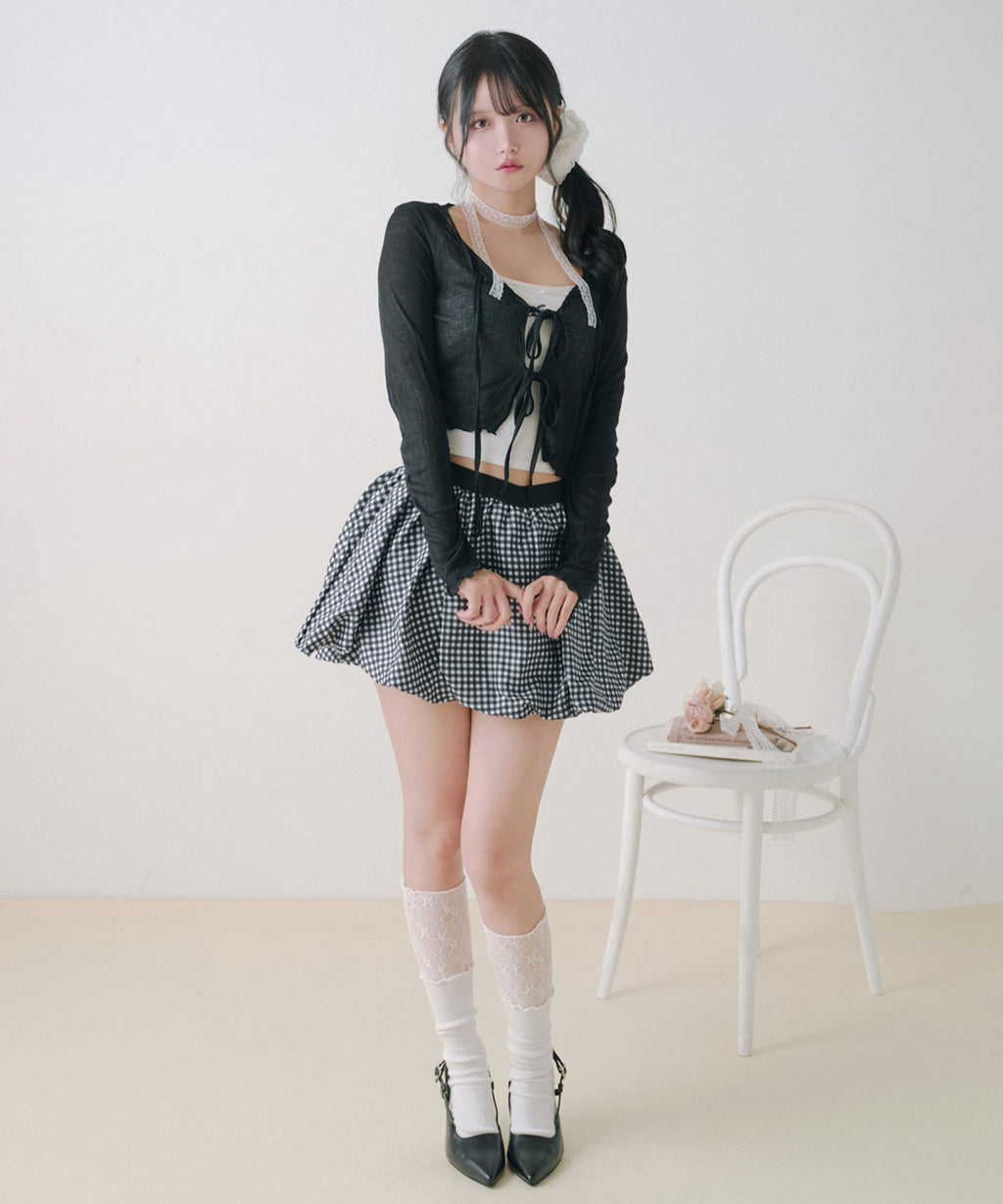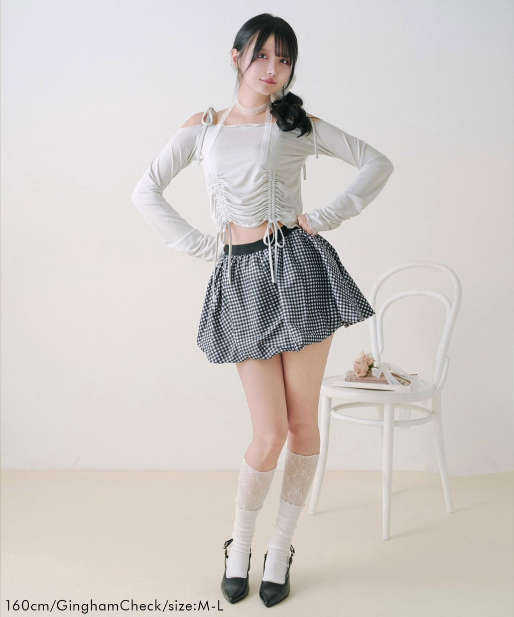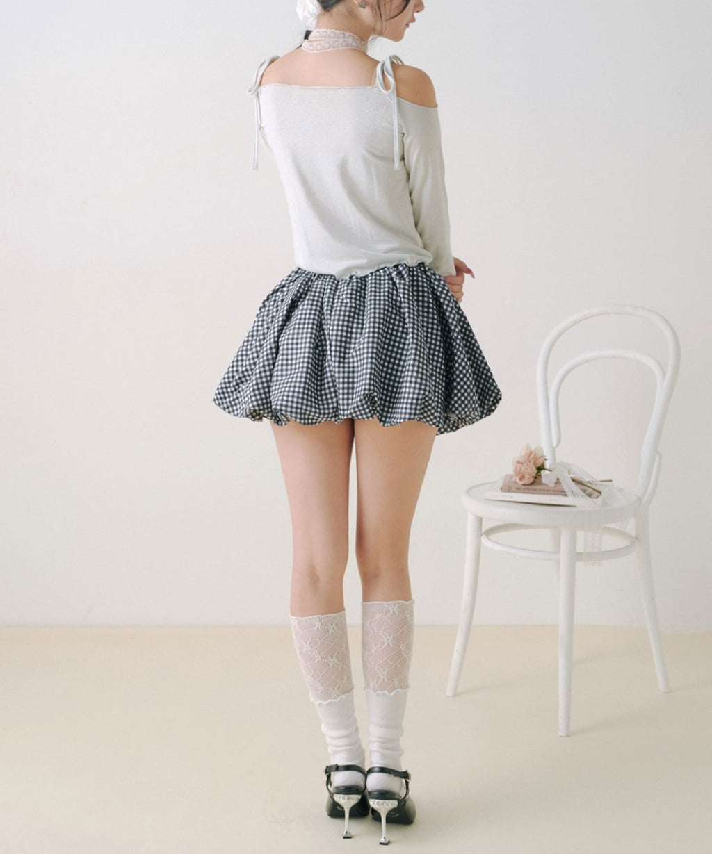 バレエコアスタイルを存分に楽しめる、愛らしいバルーンミニスカート。