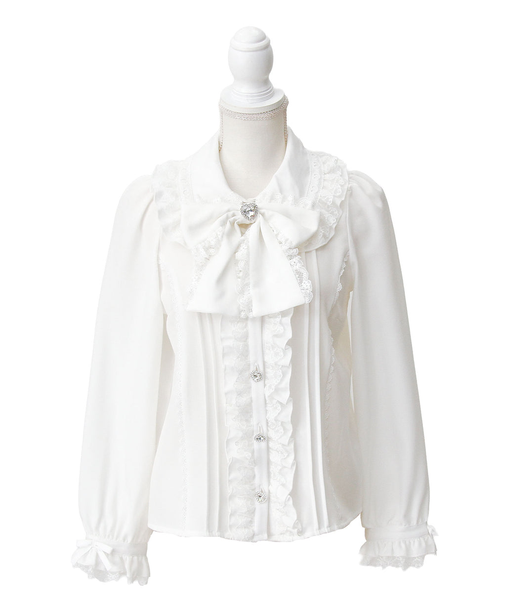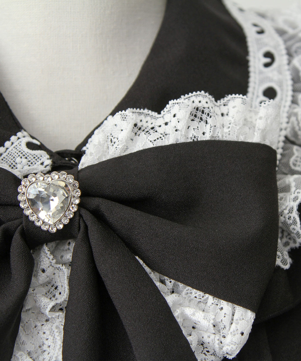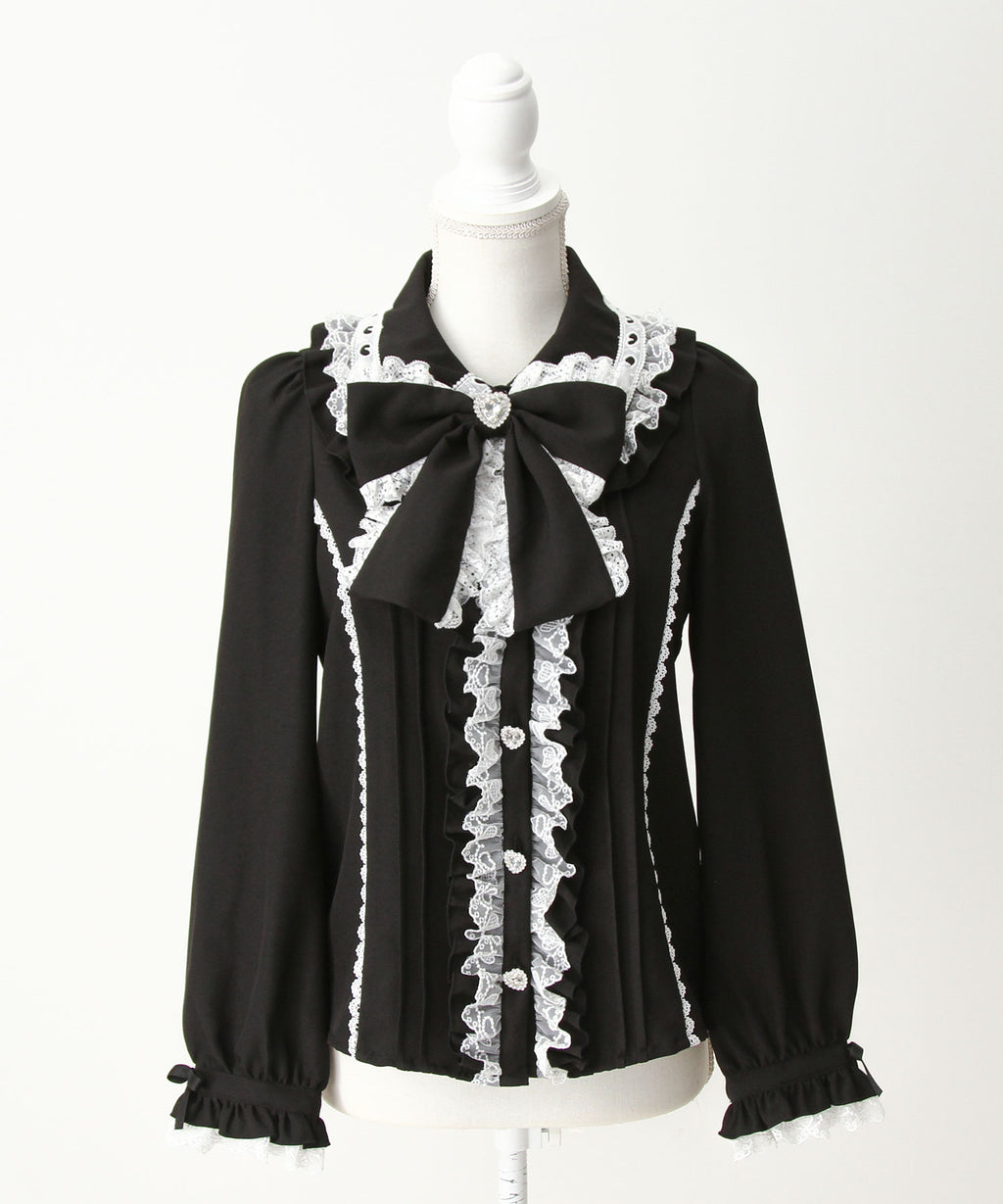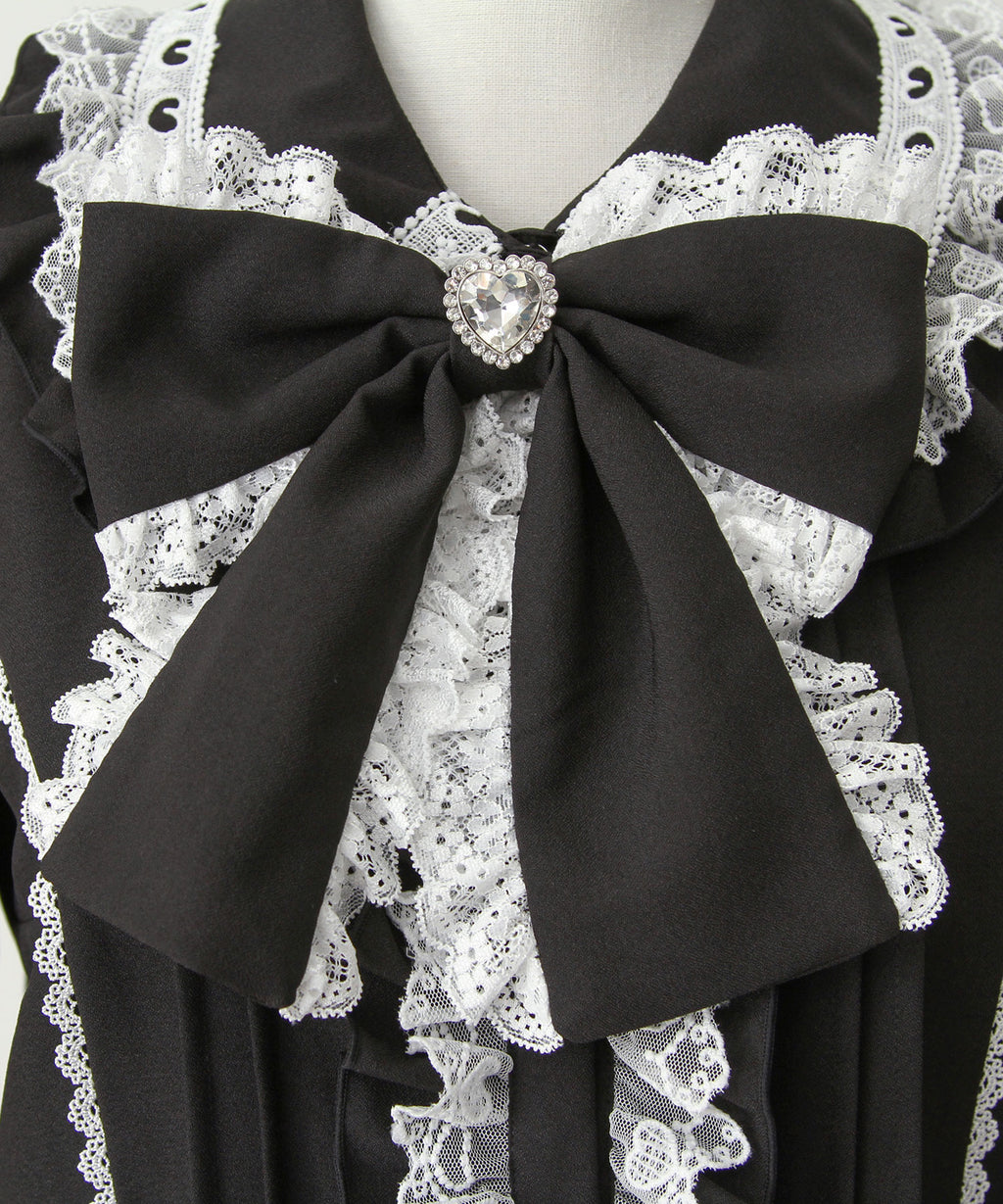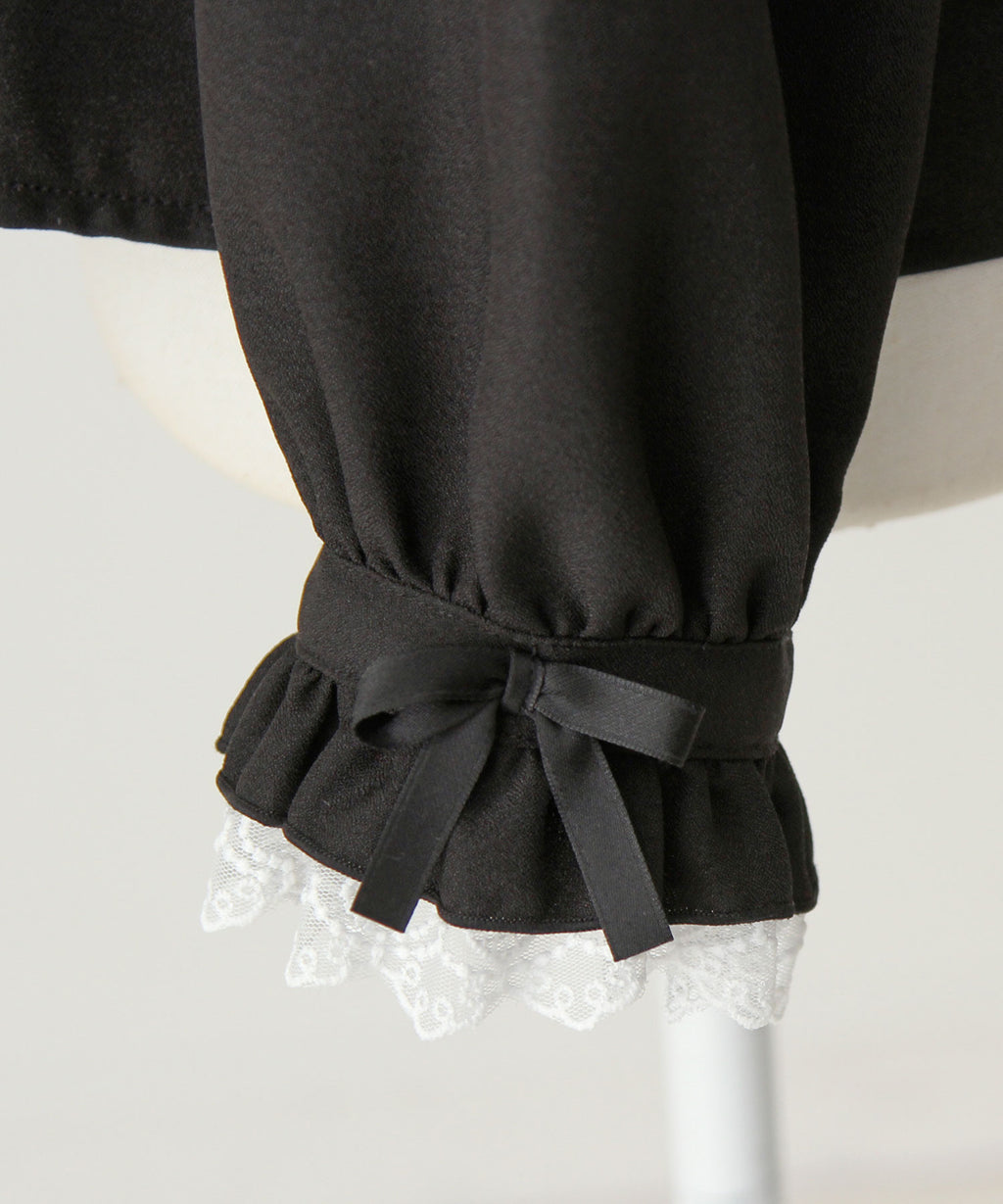リボンを外すと、襟元と前立て部分のレースやフリルが引き立つ、より定番で着回しやすい甘めコーデに♪