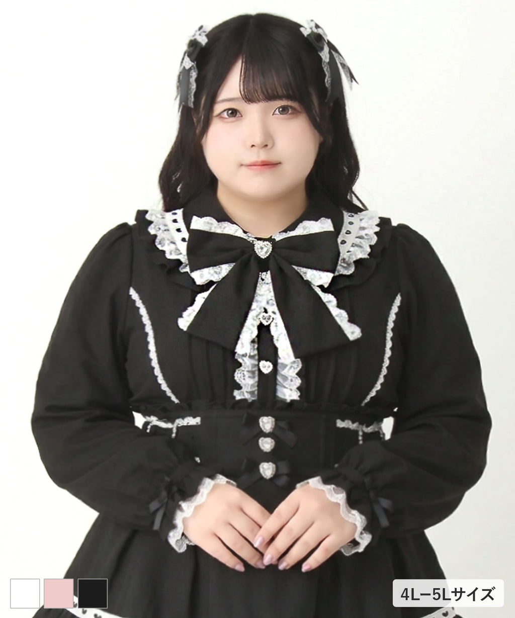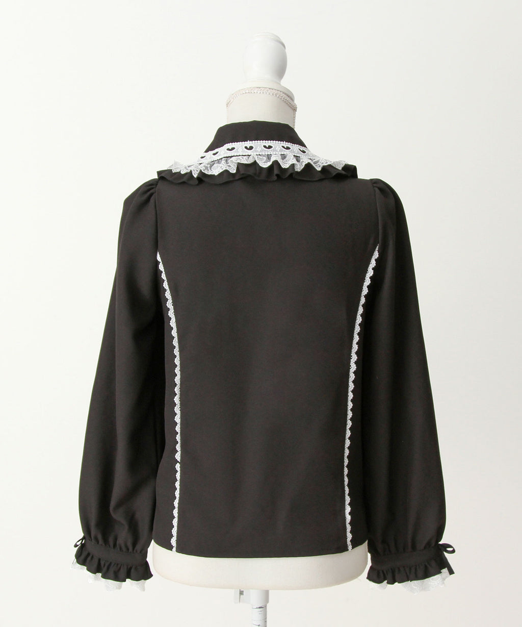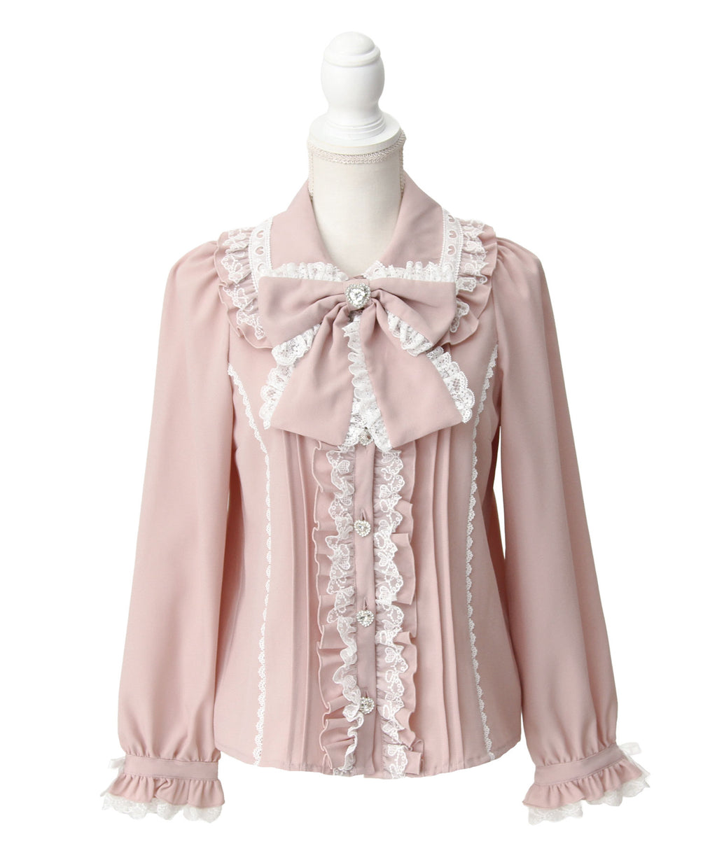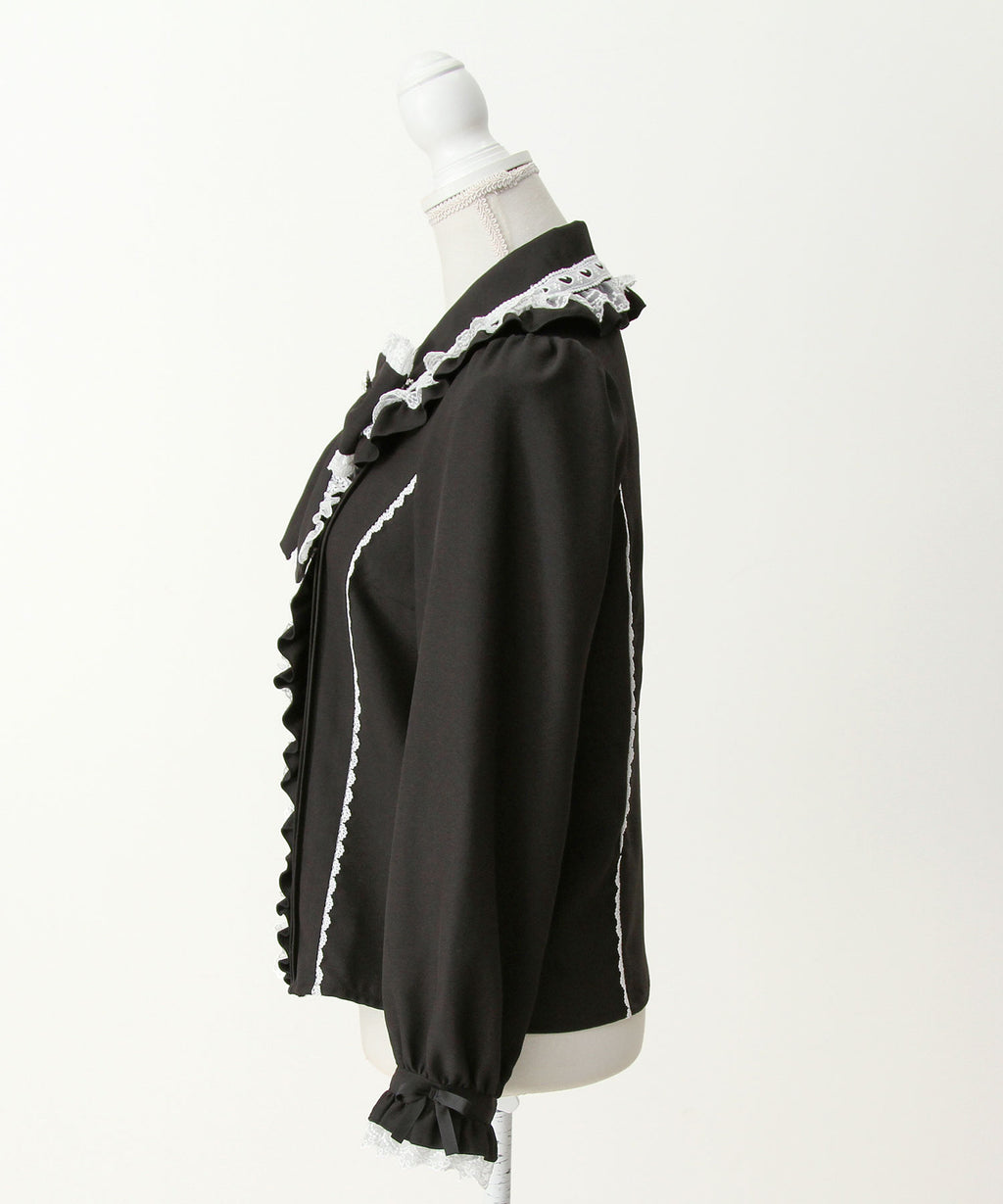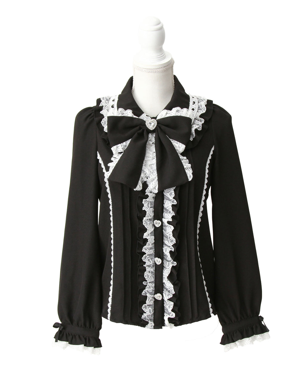 リボンを外すと、襟元と前立て部分のレースやフリルが引き立つ、より定番で着回しやすい甘めコーデに♪