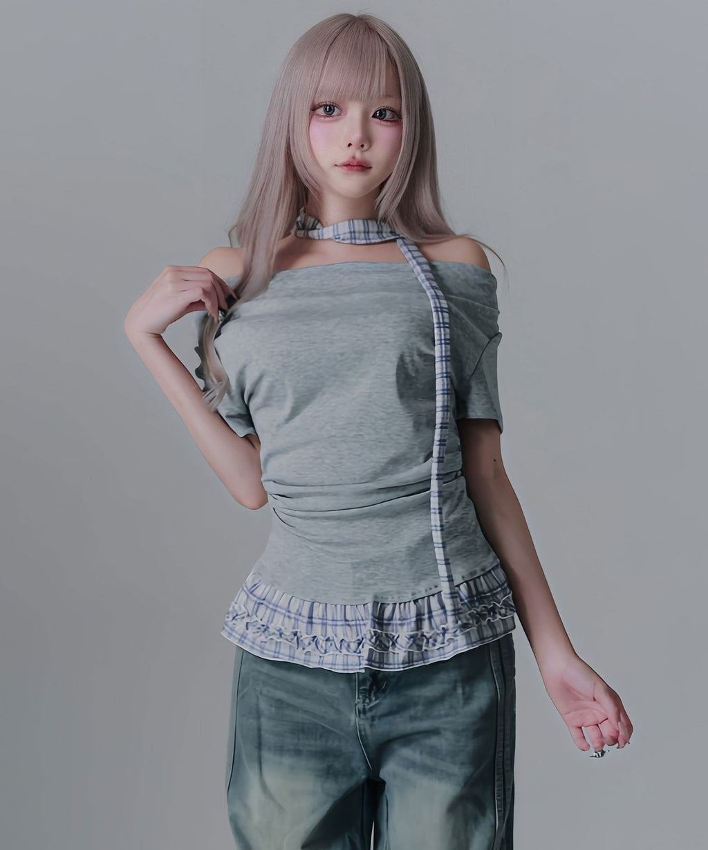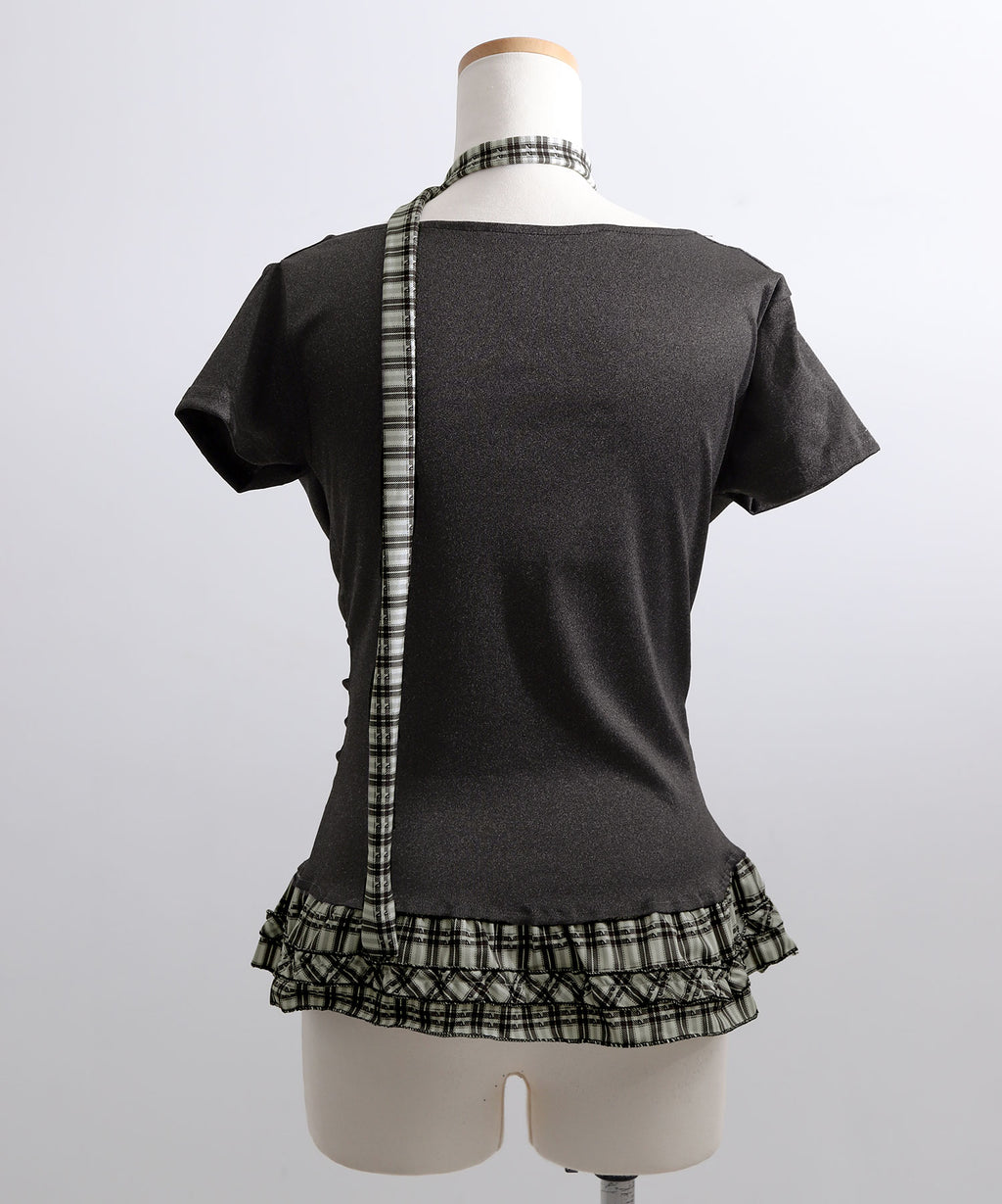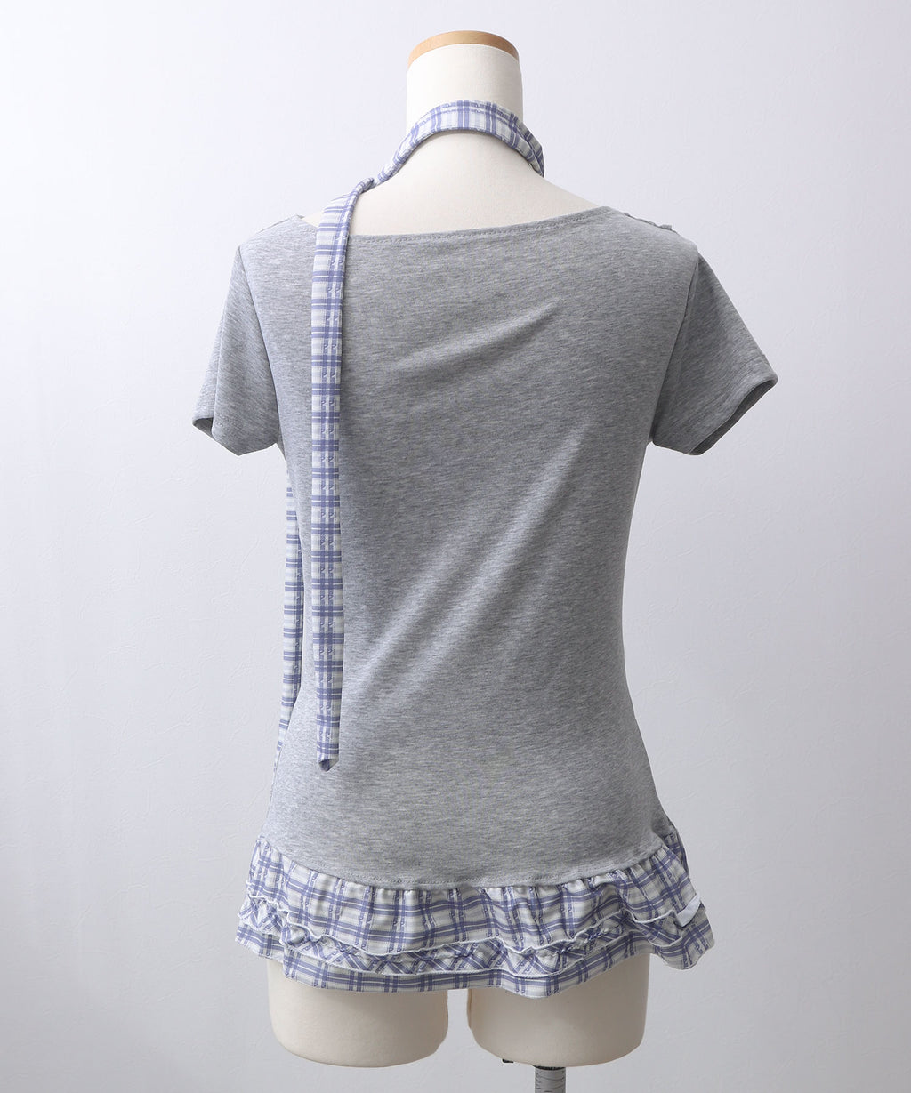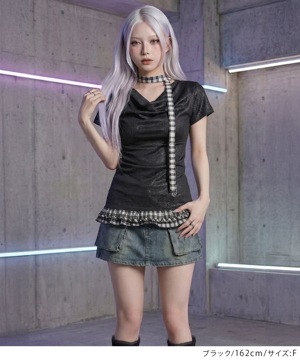 ギャル服 サブカル 地雷 バレエコア グランジ Y2K 平成ギャル Tシャツ カットソートップス ネックストラップ チョーカー風トップス サブカルコーデ Y2Kコーデ