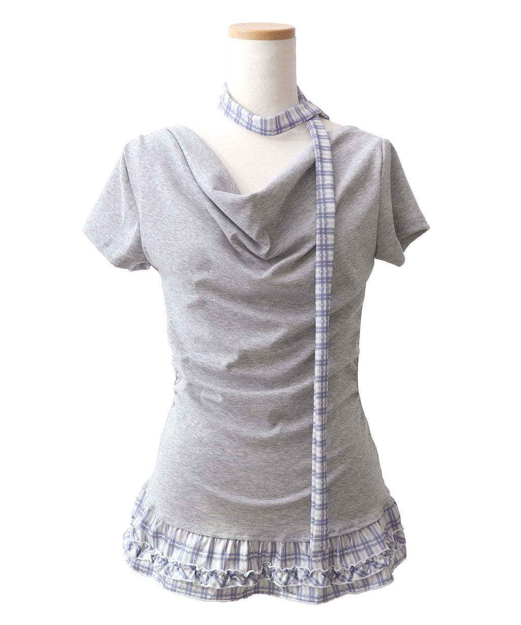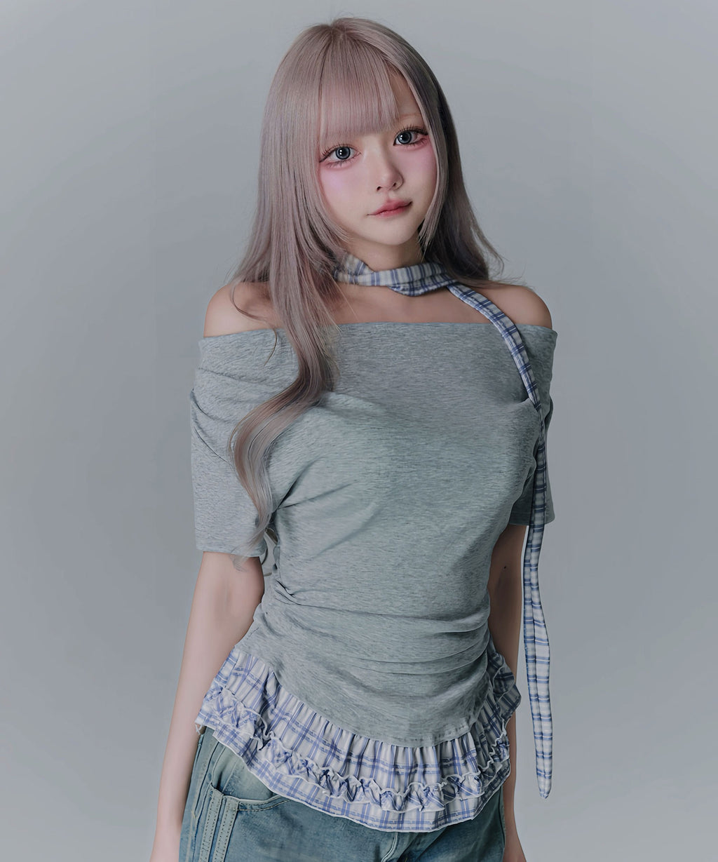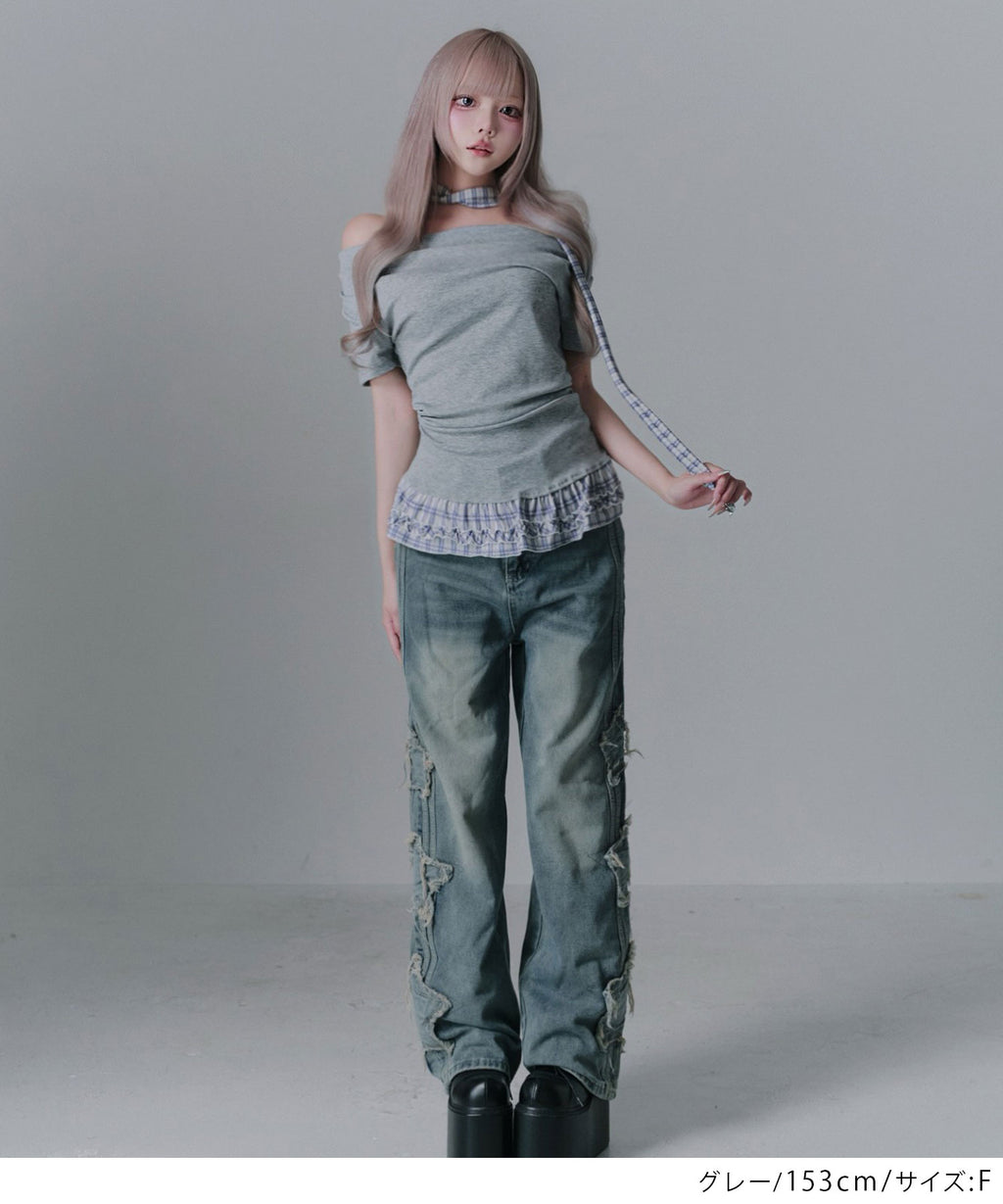 ギャル服 サブカル 地雷 バレエコア グランジ Y2K 平成ギャル Tシャツ カットソートップス ネックストラップ チョーカー風トップス サブカルコーデ Y2Kコーデ