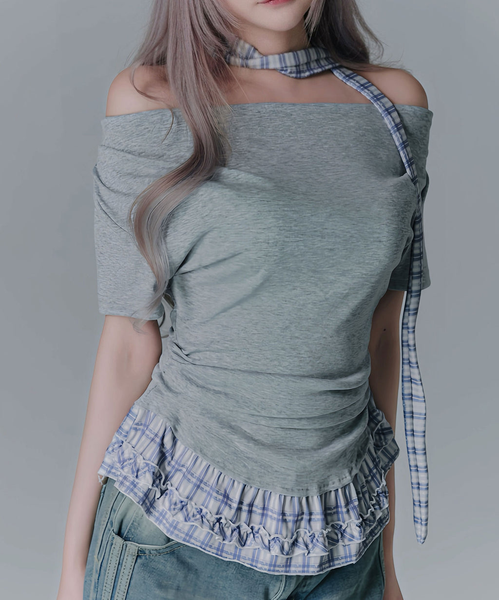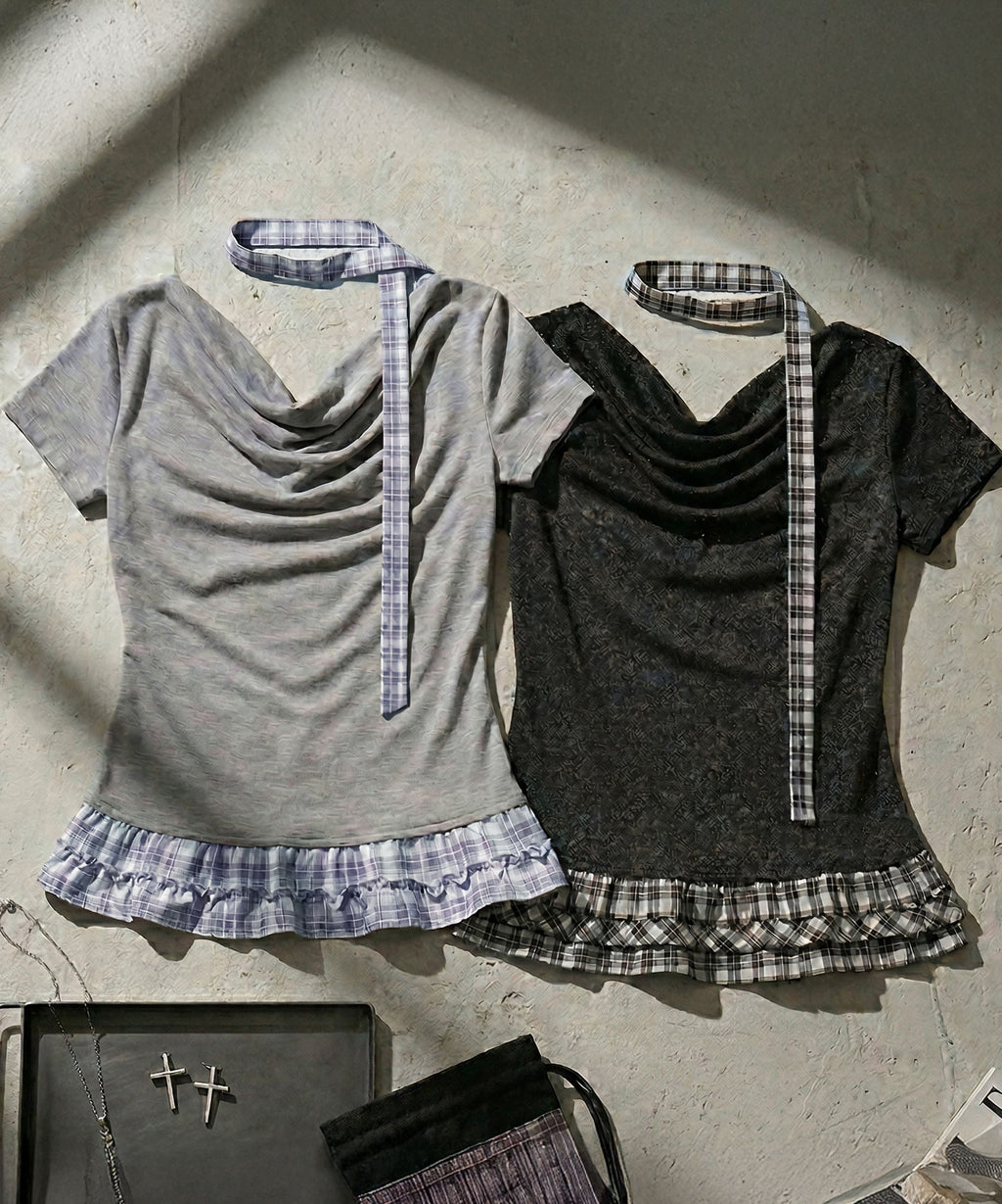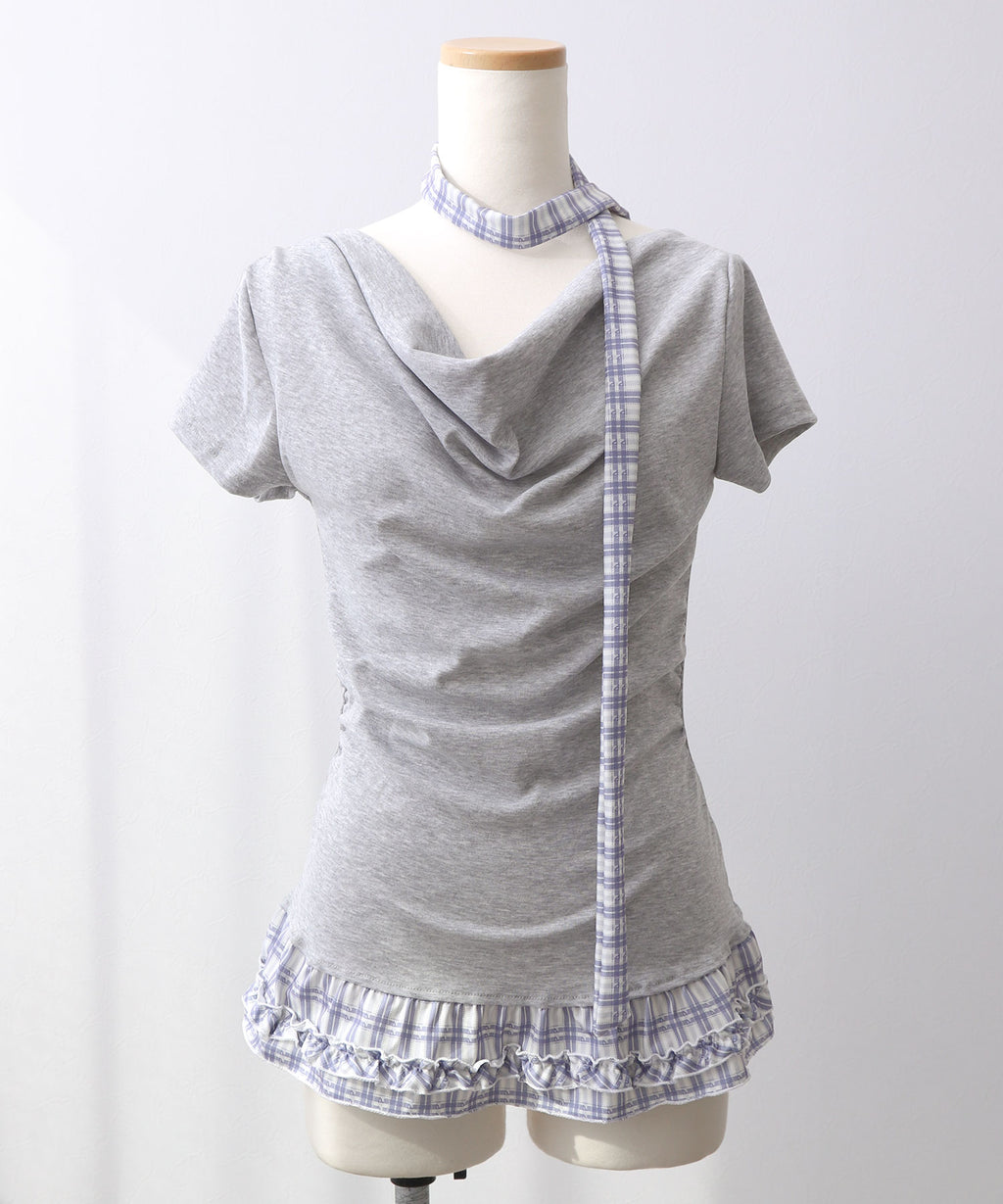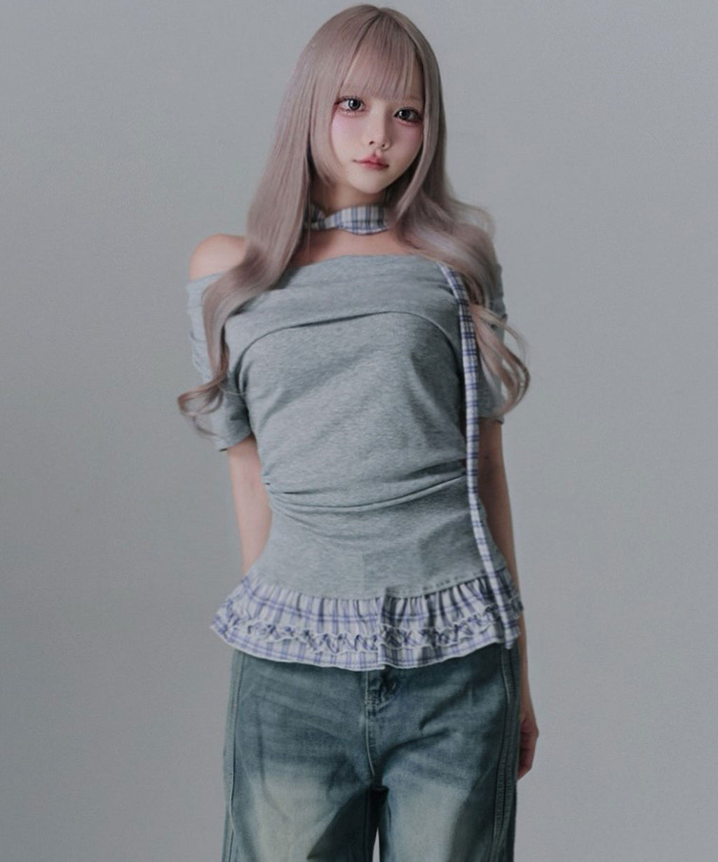 ギャル服 サブカル 地雷 バレエコア グランジ Y2K 平成ギャル Tシャツ カットソートップス ネックストラップ チョーカー風トップス サブカルコーデ Y2Kコーデ