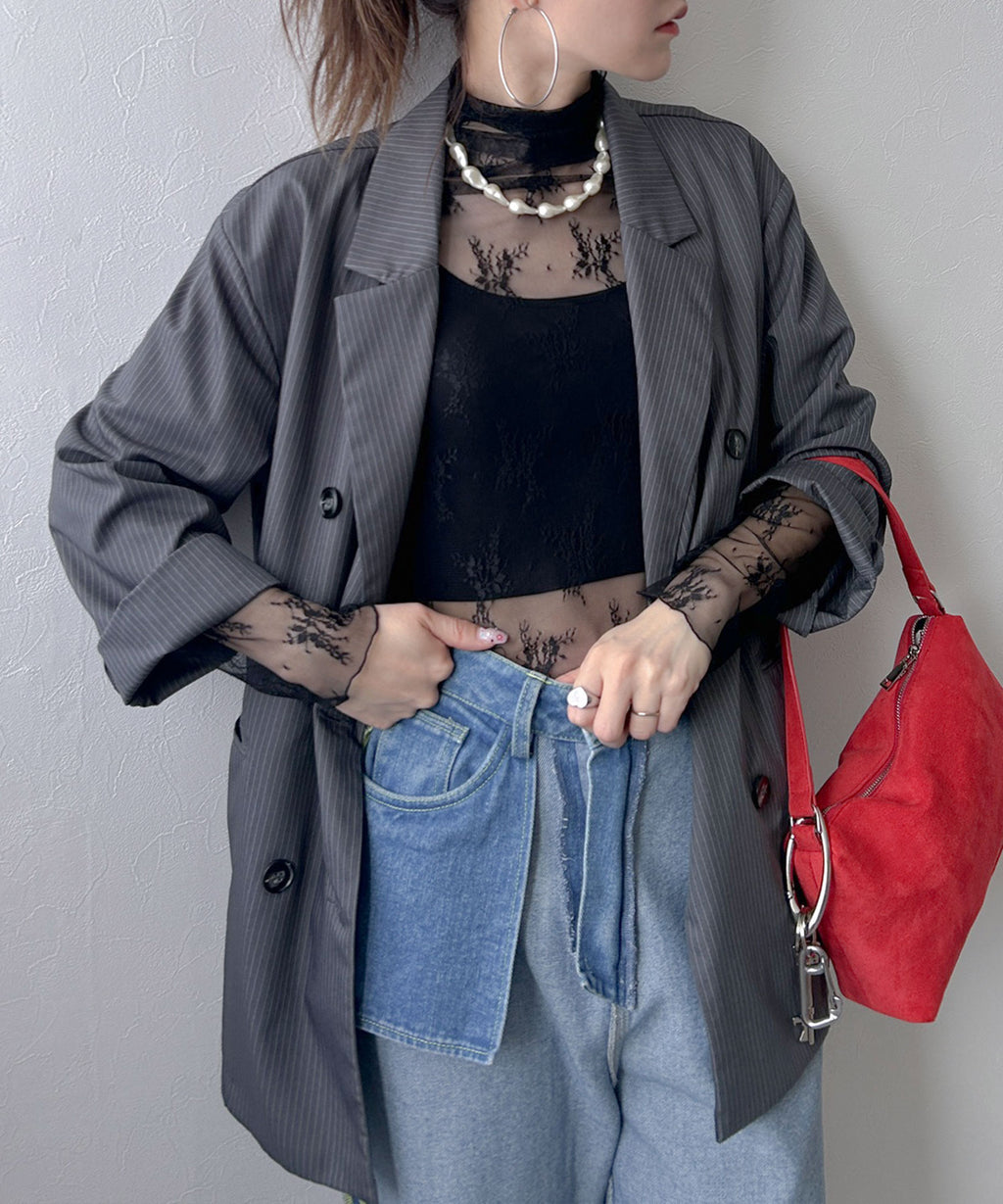 ジャケットやシャツのインナーに仕込めば一気に旬な印象に。