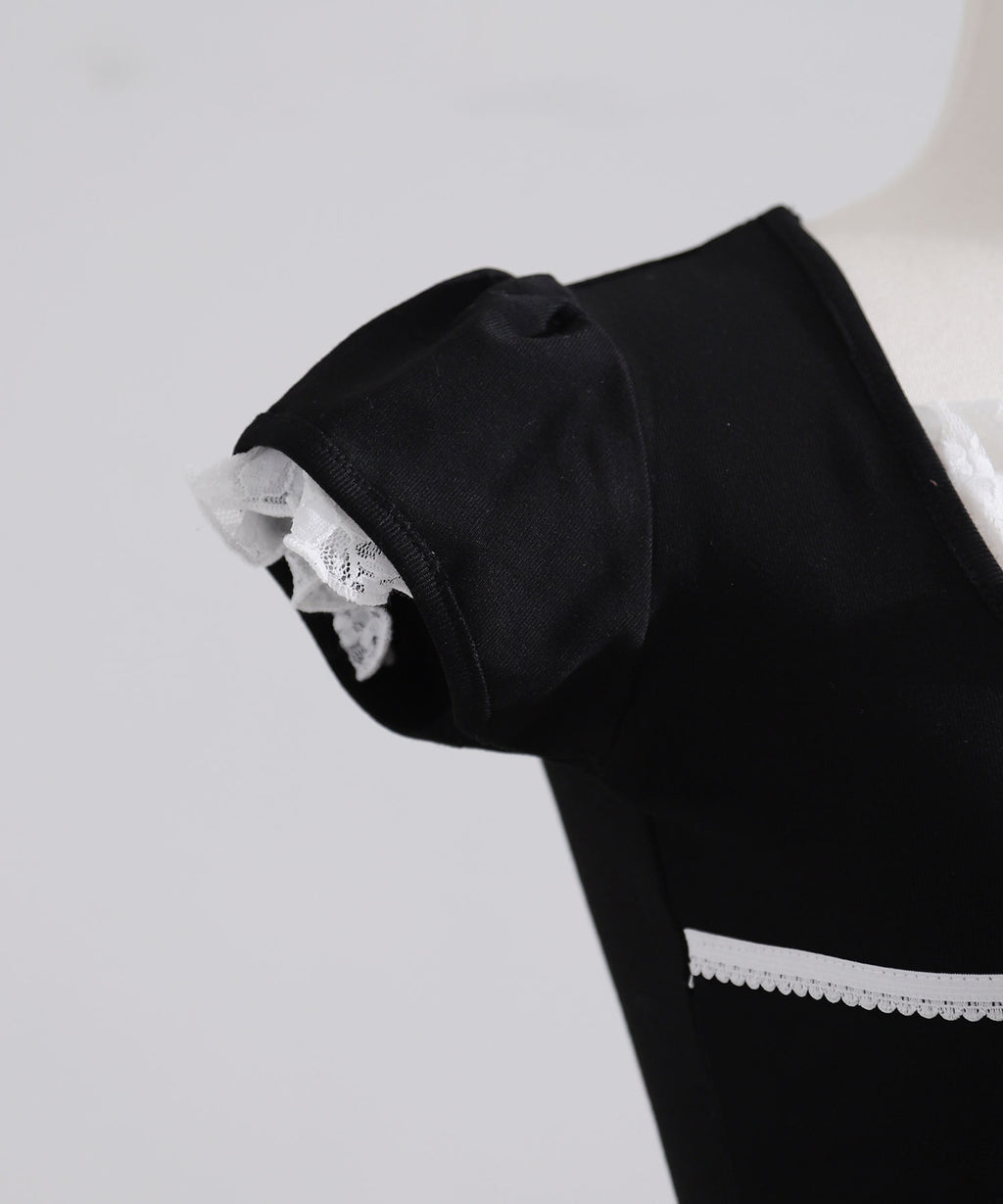 袖口のレースや胸下のレースラインもキュートなアクセントに。